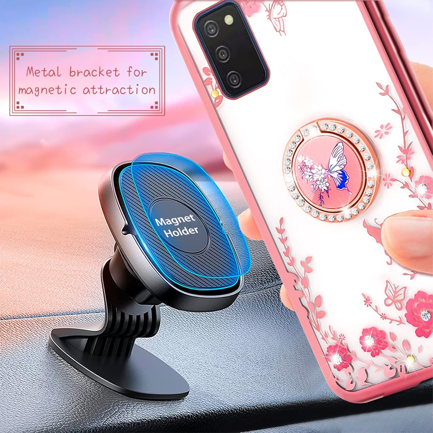 【Unique Ring Kickstand】This ring stand supports 360 degree rotating and 180 degree folding, can used as kickstand, allowing hands-free, using your Galaxy A03s from any angles comfortably. Please Note: There is a piece of hidden iron inside the center of the holder ring, which allows to put it on a magnet car mount during.