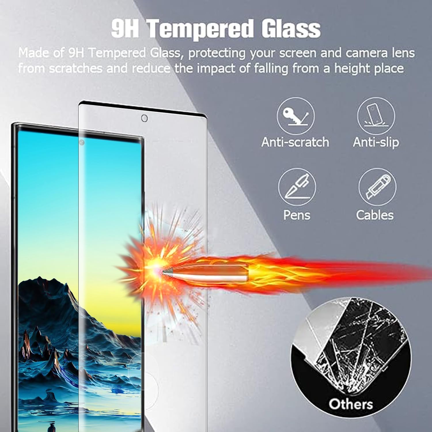 The screen protector is specifically designed using precise laser cutting technology to offer maximum screen coverage,offering durable protection to your s22 Ultra .