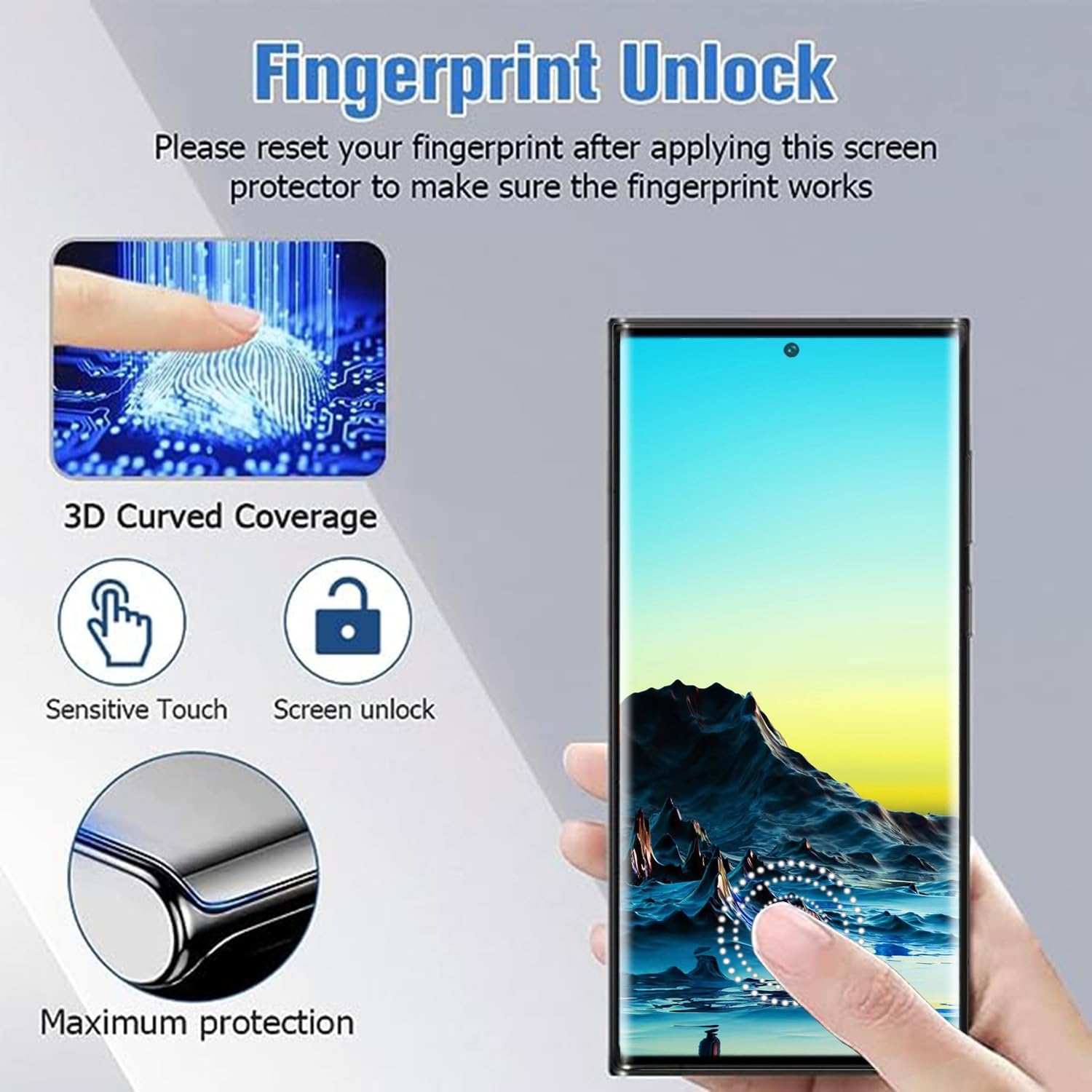 【Support Ultrasonic Fingerprint & Ultra Clear & Touch Sensitivity】High-response Haptic Touch Technology gives a “True Touch” feel, 0.26mm thickness is reliable and resilient which support ultrasonic fingerprint. 99% HD Clear screen protector with High definition transparency film and maximum resolution which keeps the bright and colorful image quality. Compatible with Face Recognition.