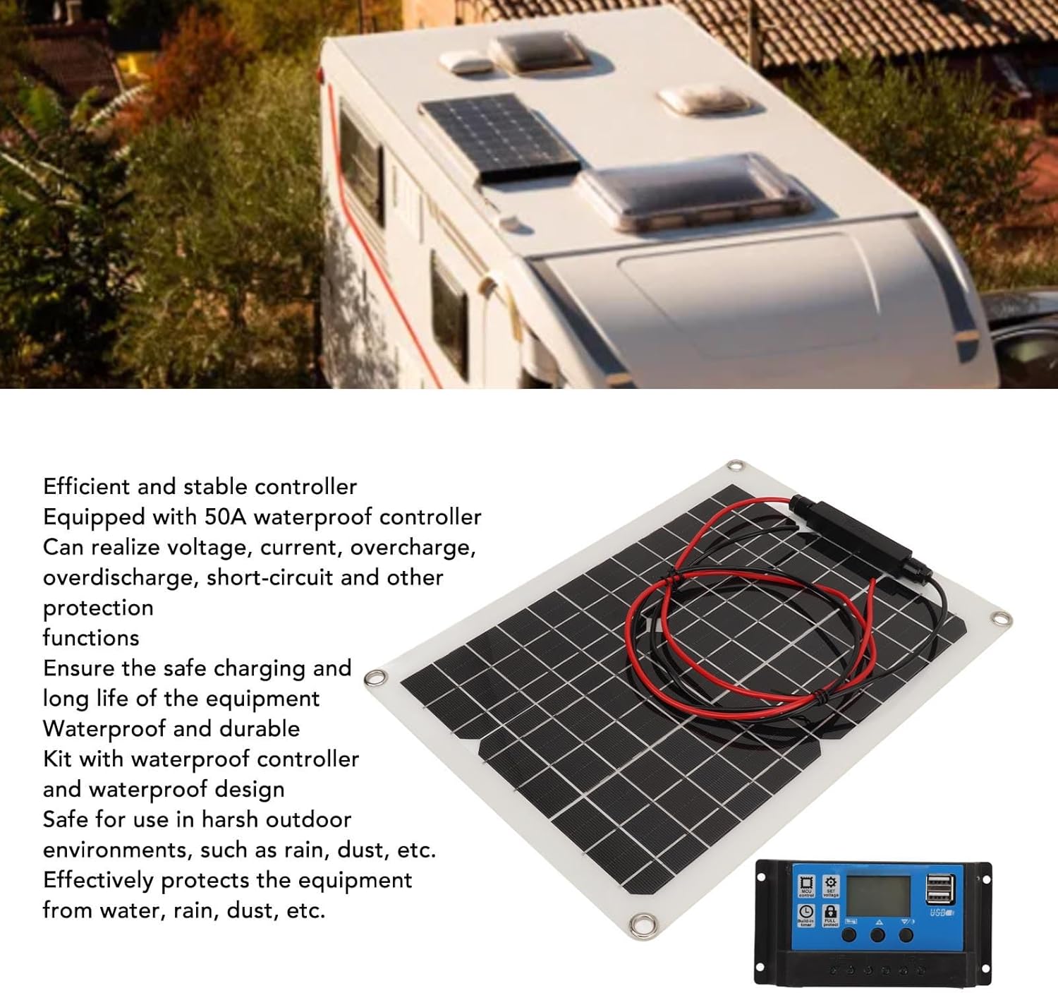 300W Solar Panel Kit DC 12V 24V 50A High Efficiency Solar Charger IP67 Waterproof with Controller for RV Camper