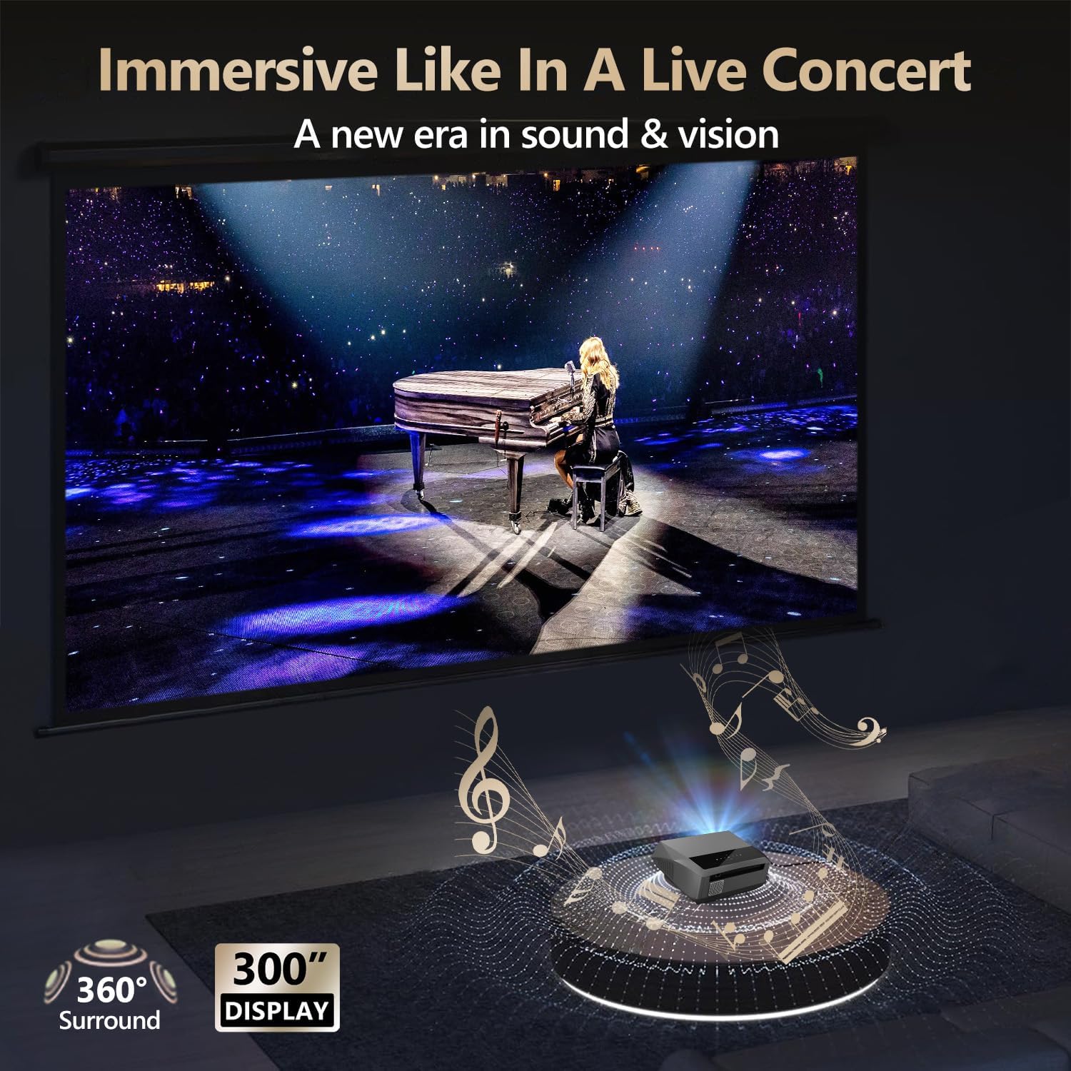 【Superior Audio-Visual Experience】With the gorgeous 4K decoding capability, the ultra HD 1080p projector provides the exceptional stunning and lifelike images with flawless details. Enhanced with HDR10+ technology and 16000:1 high contrast, the 1200 ANSI daylight projector delivers the brilliant picture quality indoor, makes the deep blacks and bright whites. Built-in 20W *2 HiFi speakers and BT 5.2 to deliver clear sound quality, clear highs and strong bass.