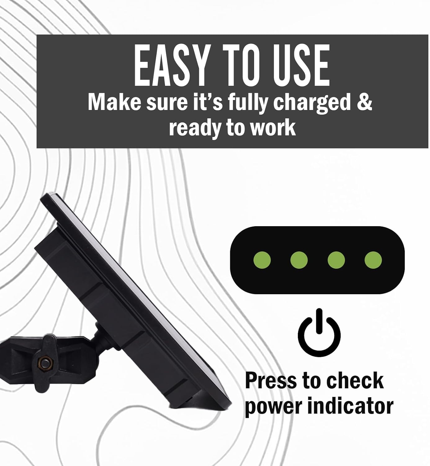 Battery bar are located at the back of the trail cam solar panel, easy for you to check how much battery left.