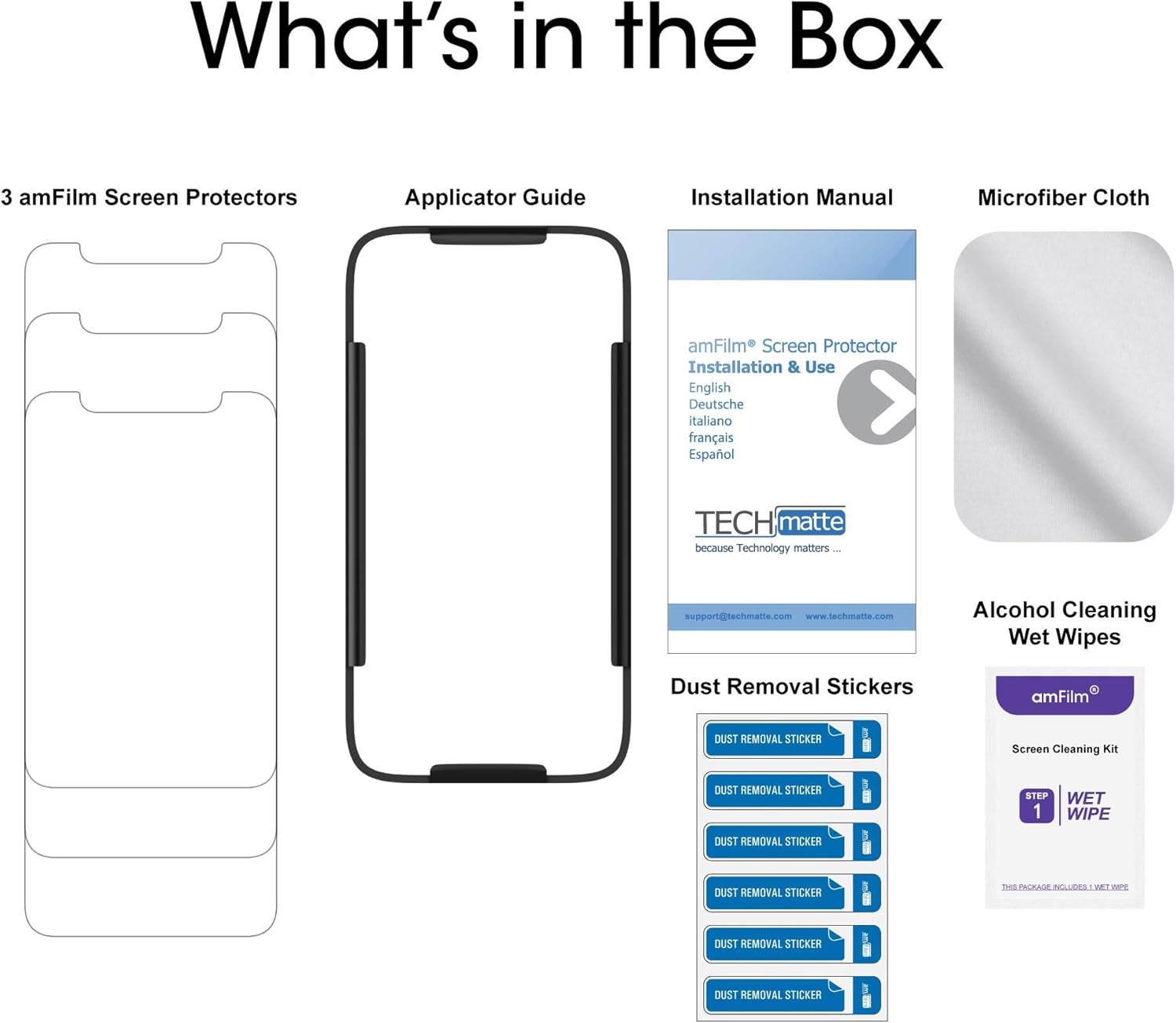 Includes: 3x GLASS Screen Protector, Installation Tray, Wet Wipes, Easy Installation Use Guide, Dust Removal Stickers