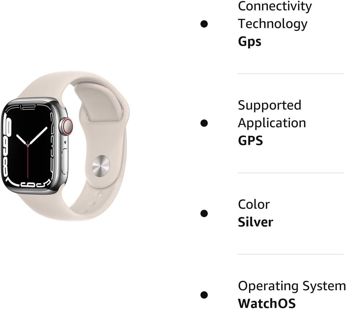 Apple Watch Series 7 (GPS + Cellular, 41MM) Silver Stainless Steel Case with Starlight Sport Band (Renewed)