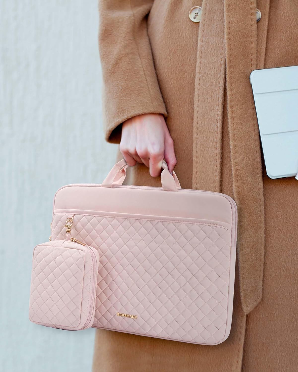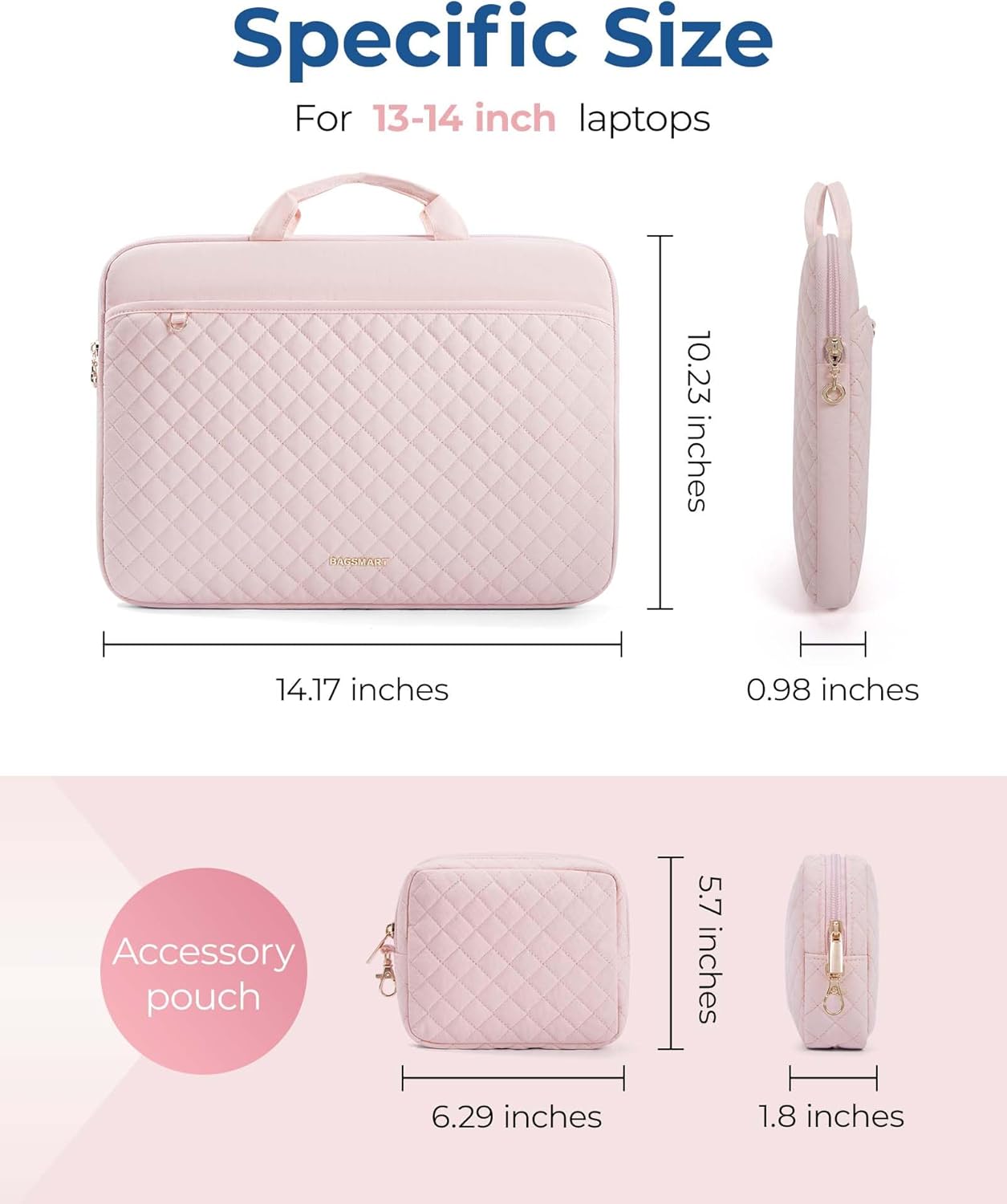 BAGSMART 13-14 inch Laptop Bag with Accessories Bag, Puffy Padded Laptop Case Sleeve with Handle, Macbook Case Fitted with Macbook Air/Pro 13.3 inch, Laptop Briefcase Fitted with Dell, HP, Lenovo,pink