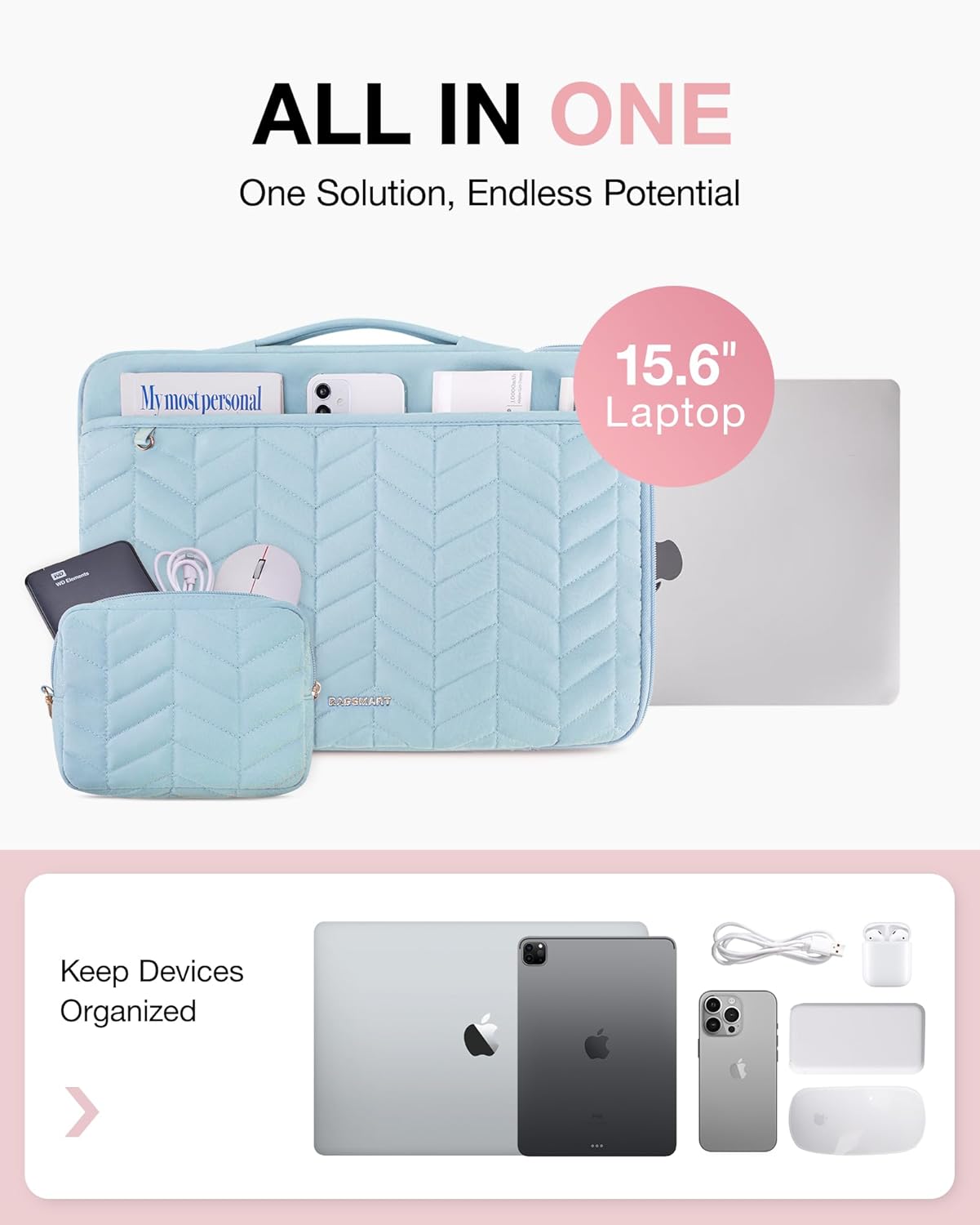 Professional Accessories Bag: Compared with other laptop sleeves, Bagsmart laptop sleeve comes with a small accessory bag, easy and convenient for you to put your mouse, earphones and even makeup items.You can remove or install the accessory bag to meet your needs for flexible use,portable and stylish. A compact size and lightweight design make it easy to take with you on the go, making it the perfect accessory for a laptop case.
