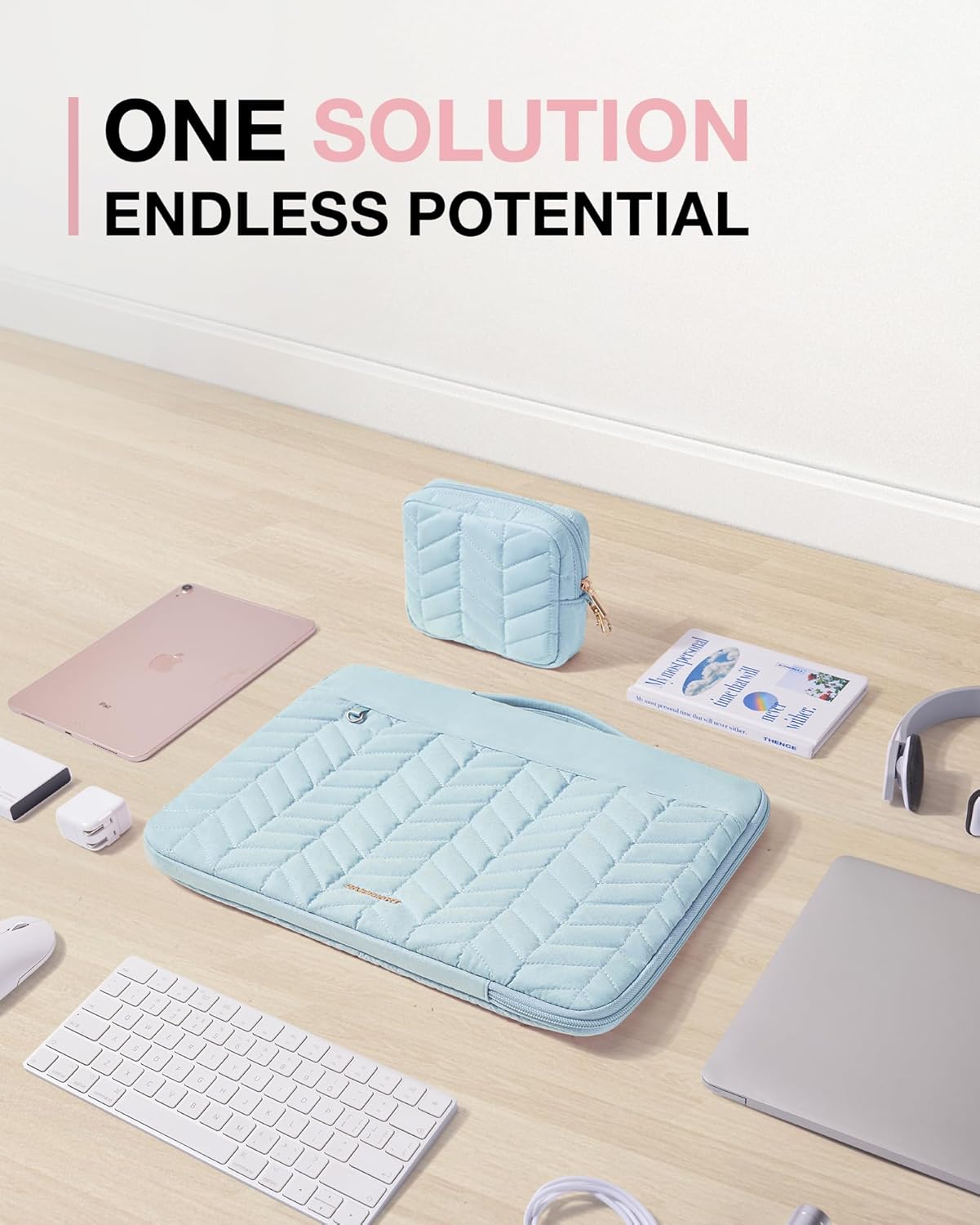 Convenient to Carry: Puffy and lightweight makes this macbook case easier to slide into your tote bag, briefcase, backpack or other bag.Sturdy top handle for long Time comfortably carrying. The metal zipper glides smoothly and provides convenient access to your laptop. This laptop sleeve is perfect for women and men for everyday use in business, travel, and business trips.Simple but meets your every needs.