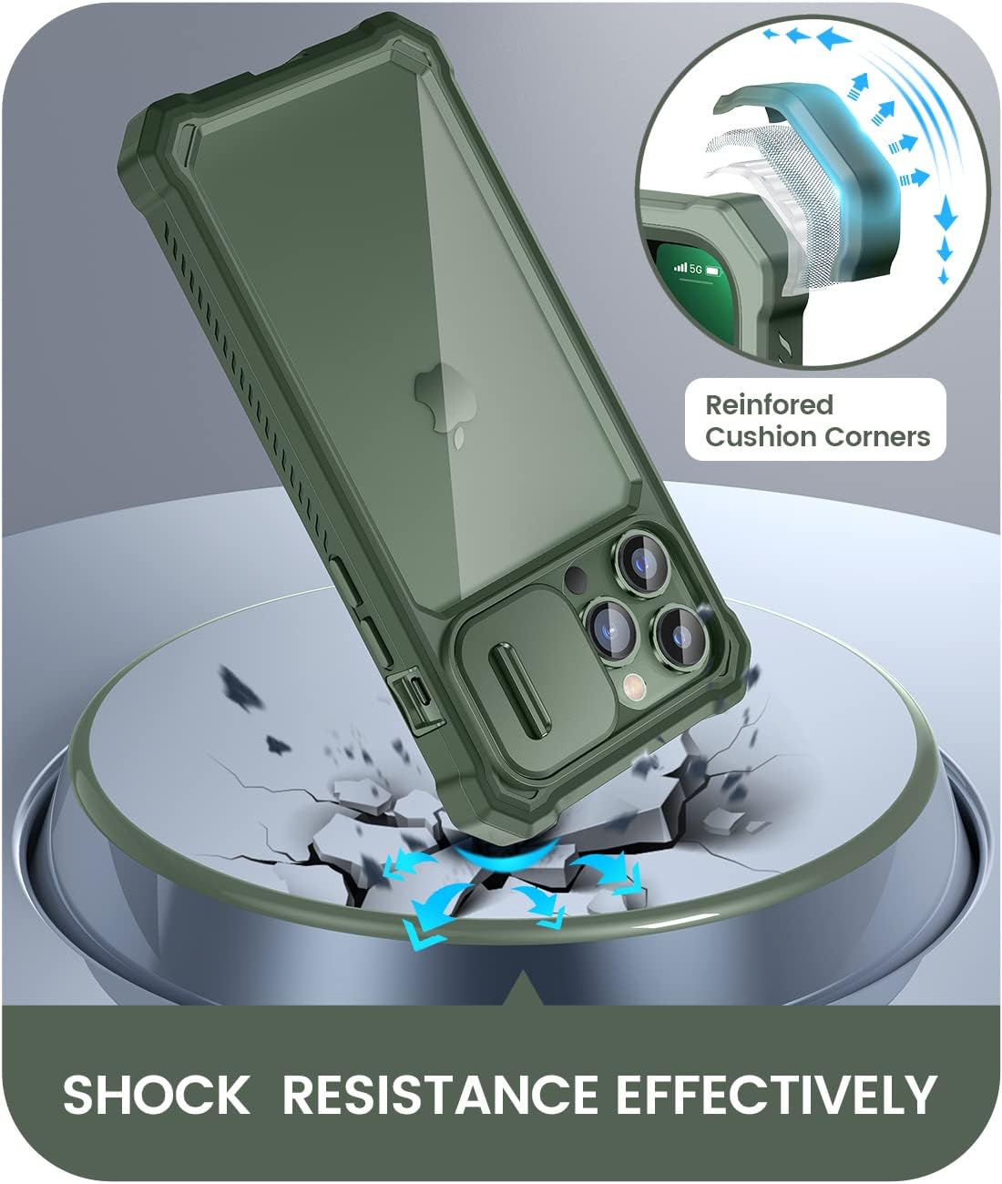 Caka for iPhone 13 Pro Max Case with Camera Cover Protector, iPhone 12 Pro Max Case with Screen Protector Heavy Duty Shockproof Protective Phone Case Cover for iPhone 13 ProMax 12 ProMax, Green