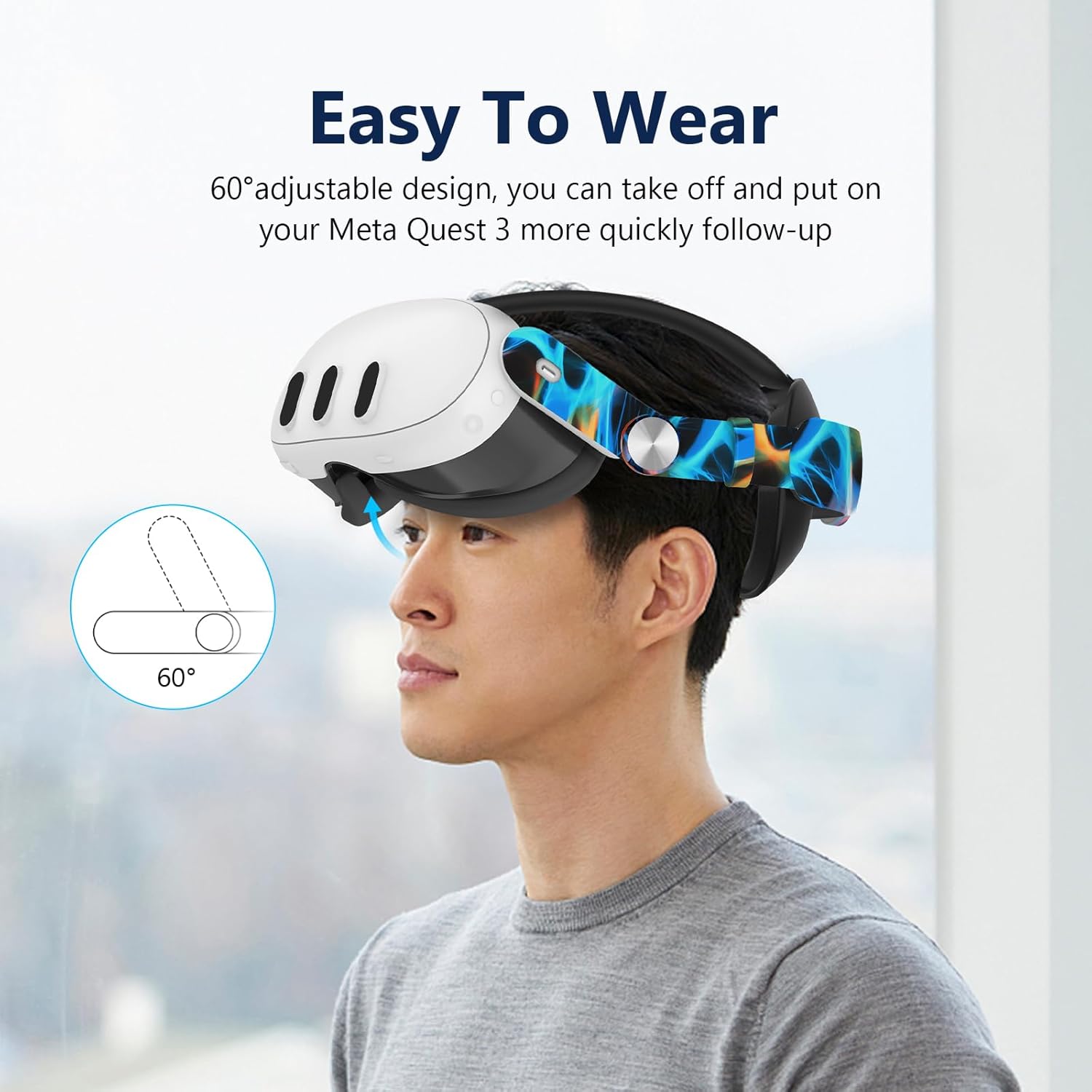 Easy to Wear and Take OFF: With upgraded 60° flippable hinge, convenient for VR player , glasses-wearing players.