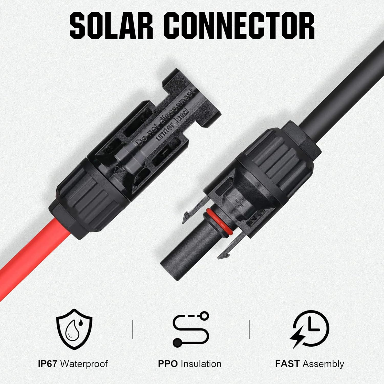 1pc 16.4ft red cable and 1pc 16.4ft black cable with connectorsFor extending the cables of solar panels, making it easy to connect solar panel with charge controller