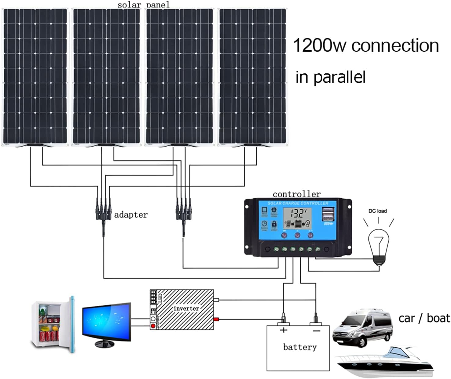 Be the first to review “FLP 600W 18V Complete Solar Power System Kit Off Grid Panel 2 Pcs 300W Monocrystalline and 40A Controller for Caravan, RV, Boat Uneven Surfaces……”