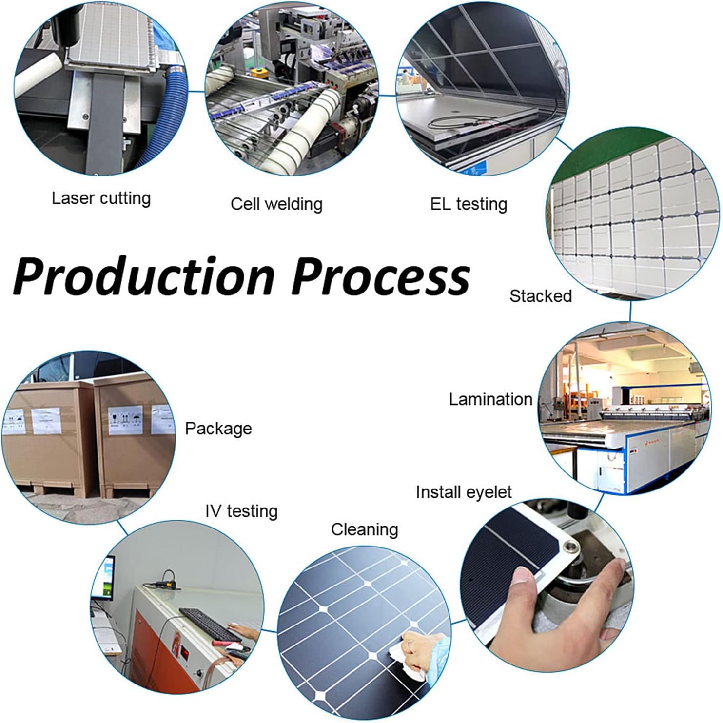 * 【Good flexibility】The minimum radius of the arc that a solar flexible panel can reach is 30cm.It is allowed to be installed on trailers, boats, cabins, tents, cars, trucks, trailers, yachts, trailers, roofs, or any other irregular surface.