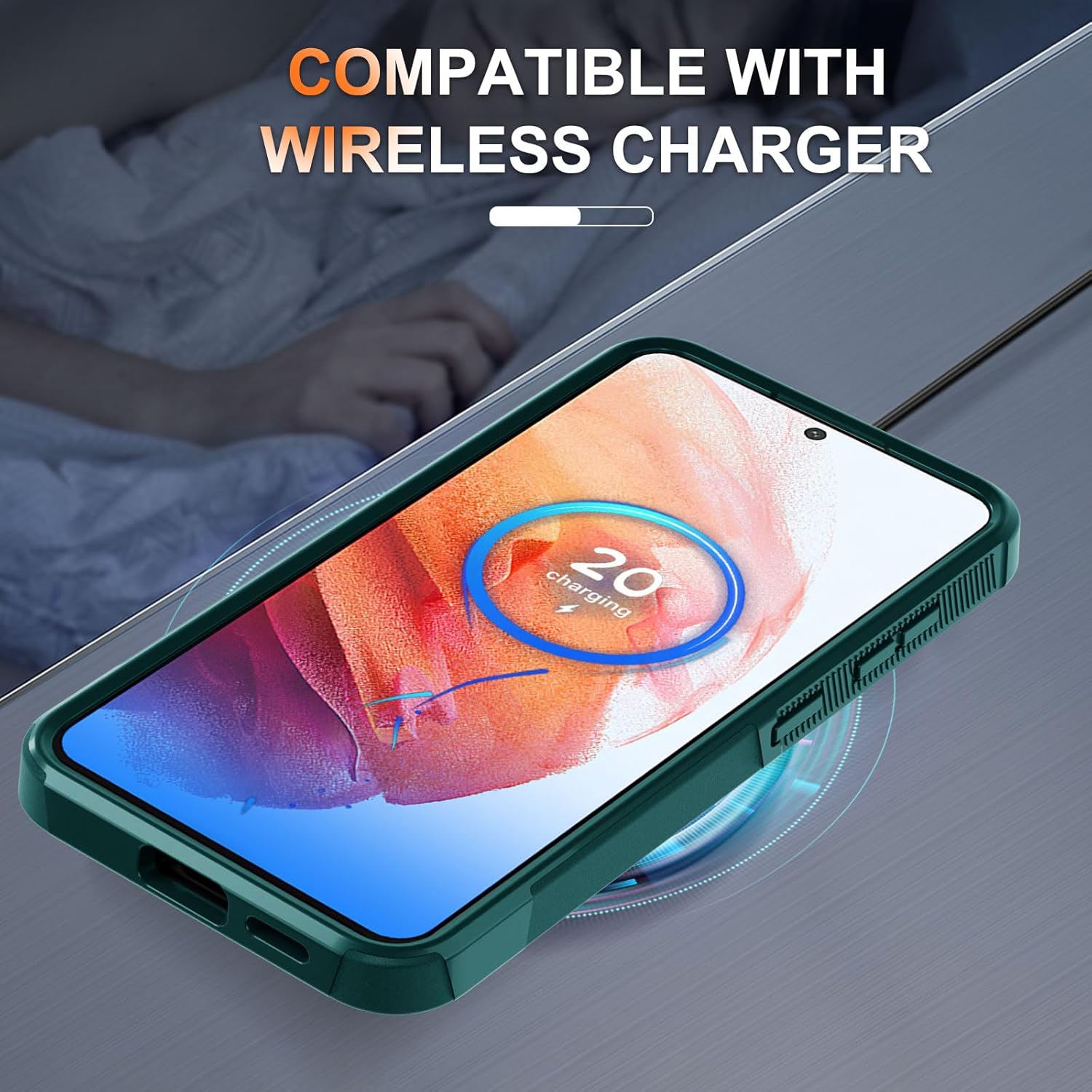 for Samsung Galaxy S21 Plus Case, Full Body Heavy Duty Rugged Shockproof Protective Phone Cover with Lanyard Strap, Tempered Glass Screen Protector and Camera Lens Cover, Dark Green