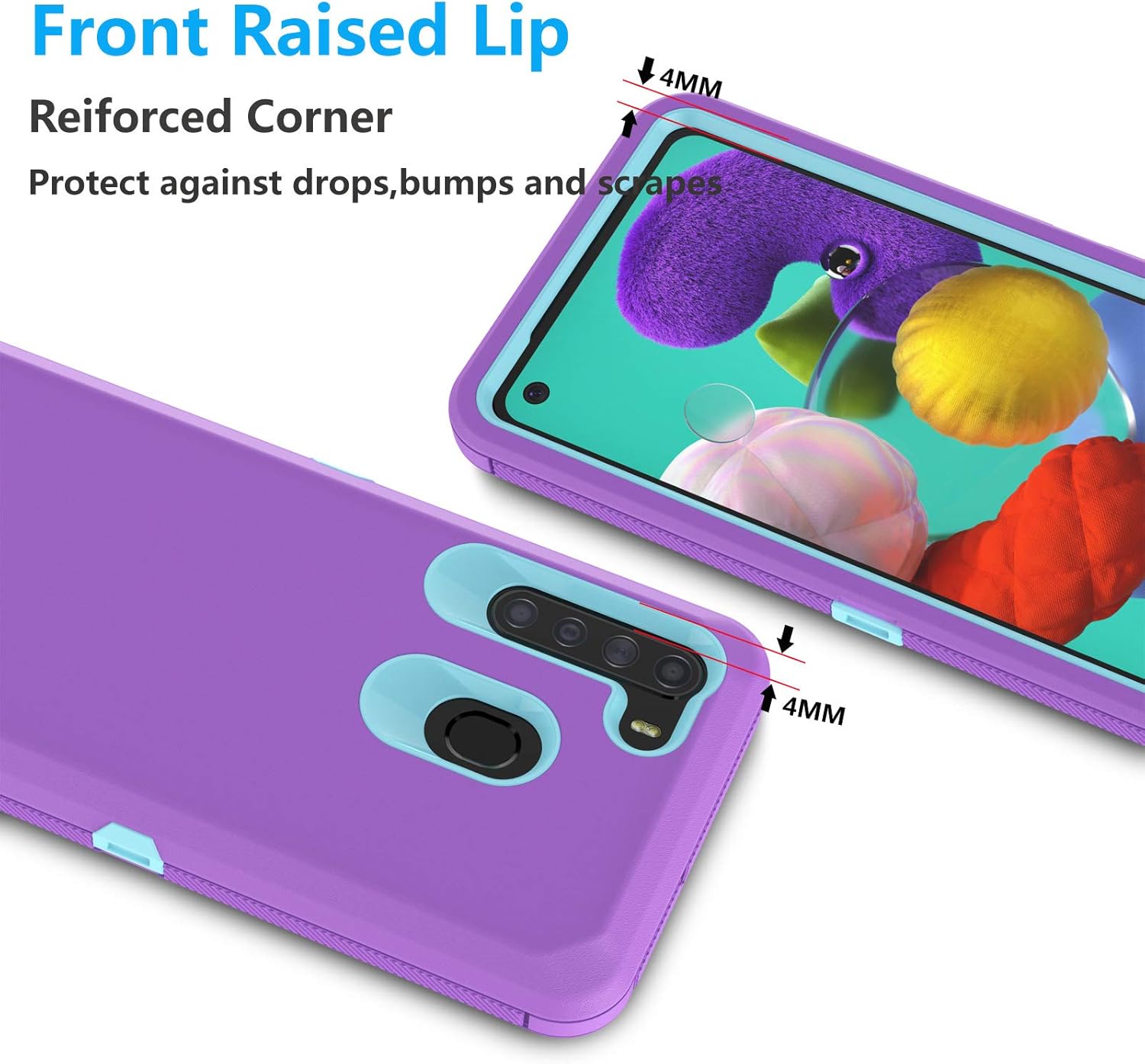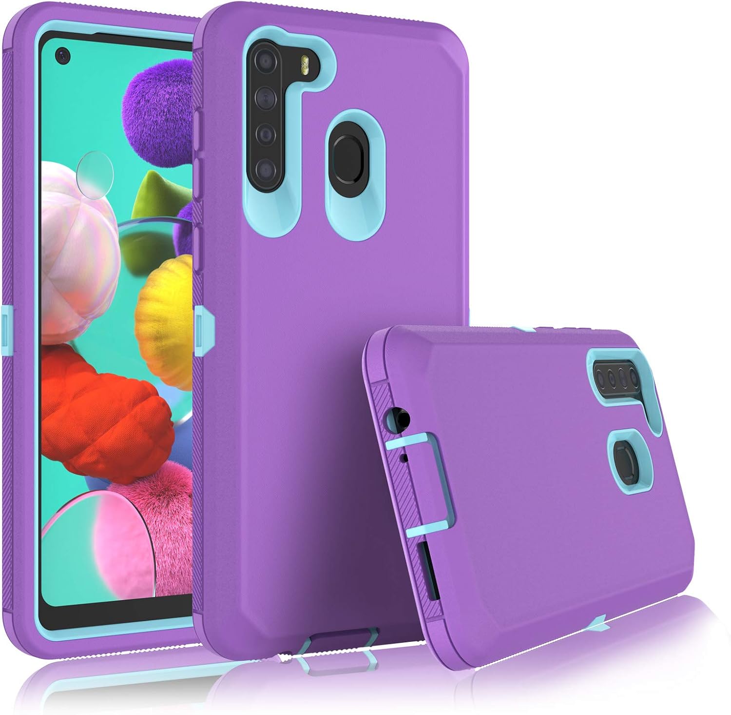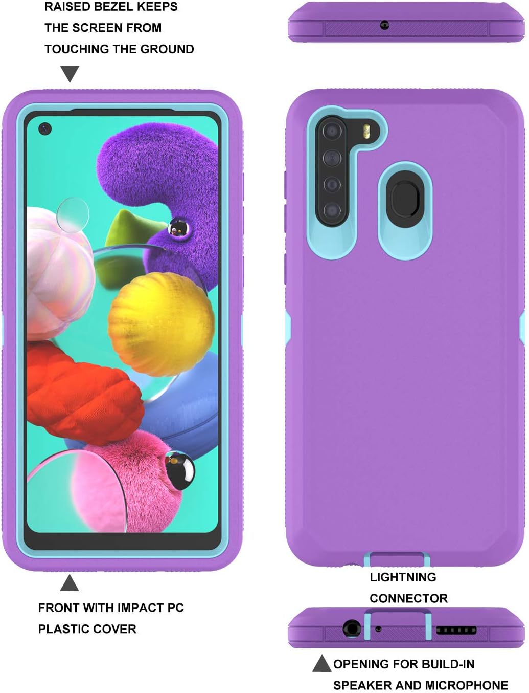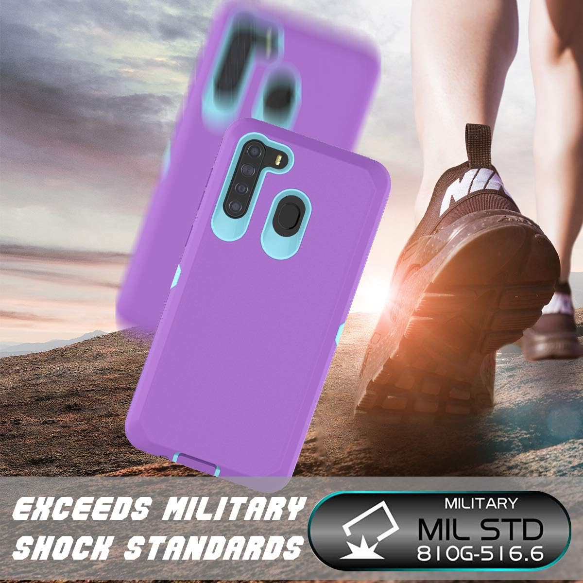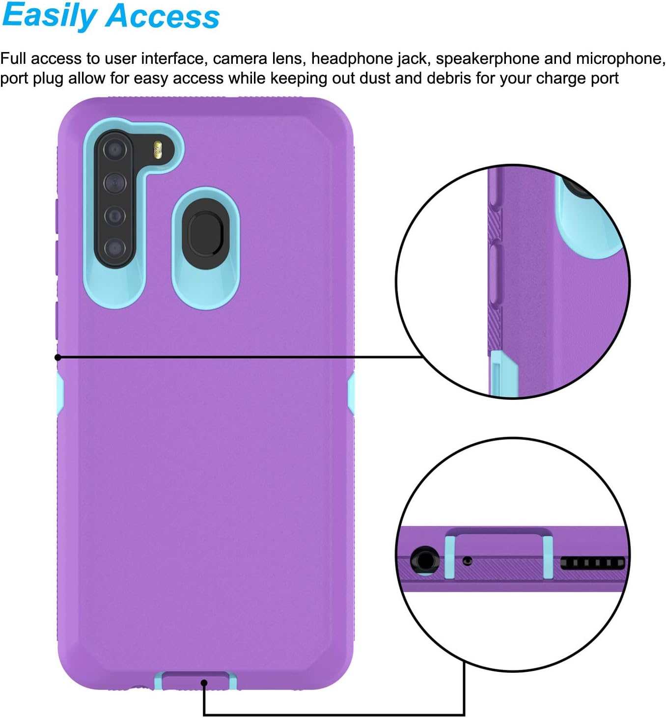 Galaxy A21 Case, [Drop Protection] Full Body Shock Dust Absorbing Grip Plastic Bumper TPU 3-Layers Durable Solid Phone Sturdy Hard Cases Cover for 6.5″ Samsung Galaxy A21 [Purple]