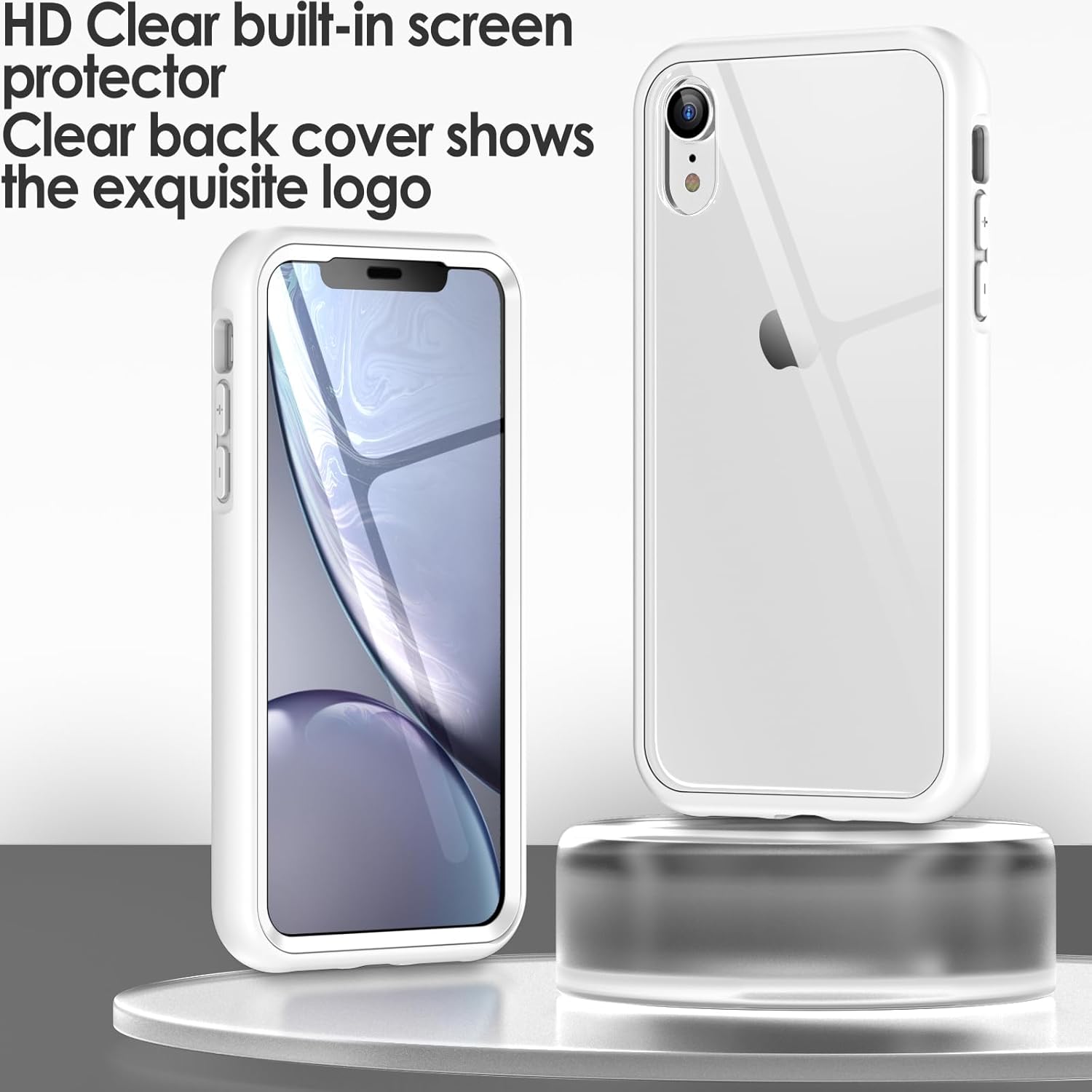 JETech Case for iPhone XR 6.1-Inch with Built-in Anti-Scratch Screen Protector, 360 Degree Full Body Rugged Phone Cover Clear-Back (White)
