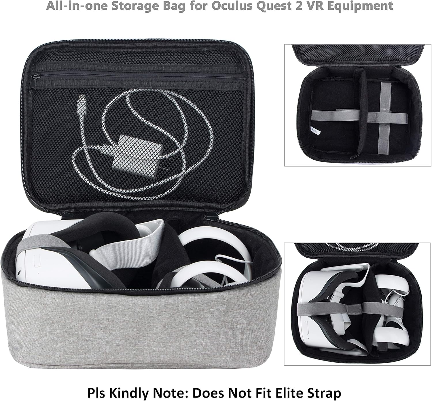 KISLANE Soft Carrying Case Compatible with Oculus Quest 2 VR, Carrying Case for Oculus Quest 2 Headset Fits for Travel, Home, Outdoor, Not Compatible with Elite Strap(Grey)