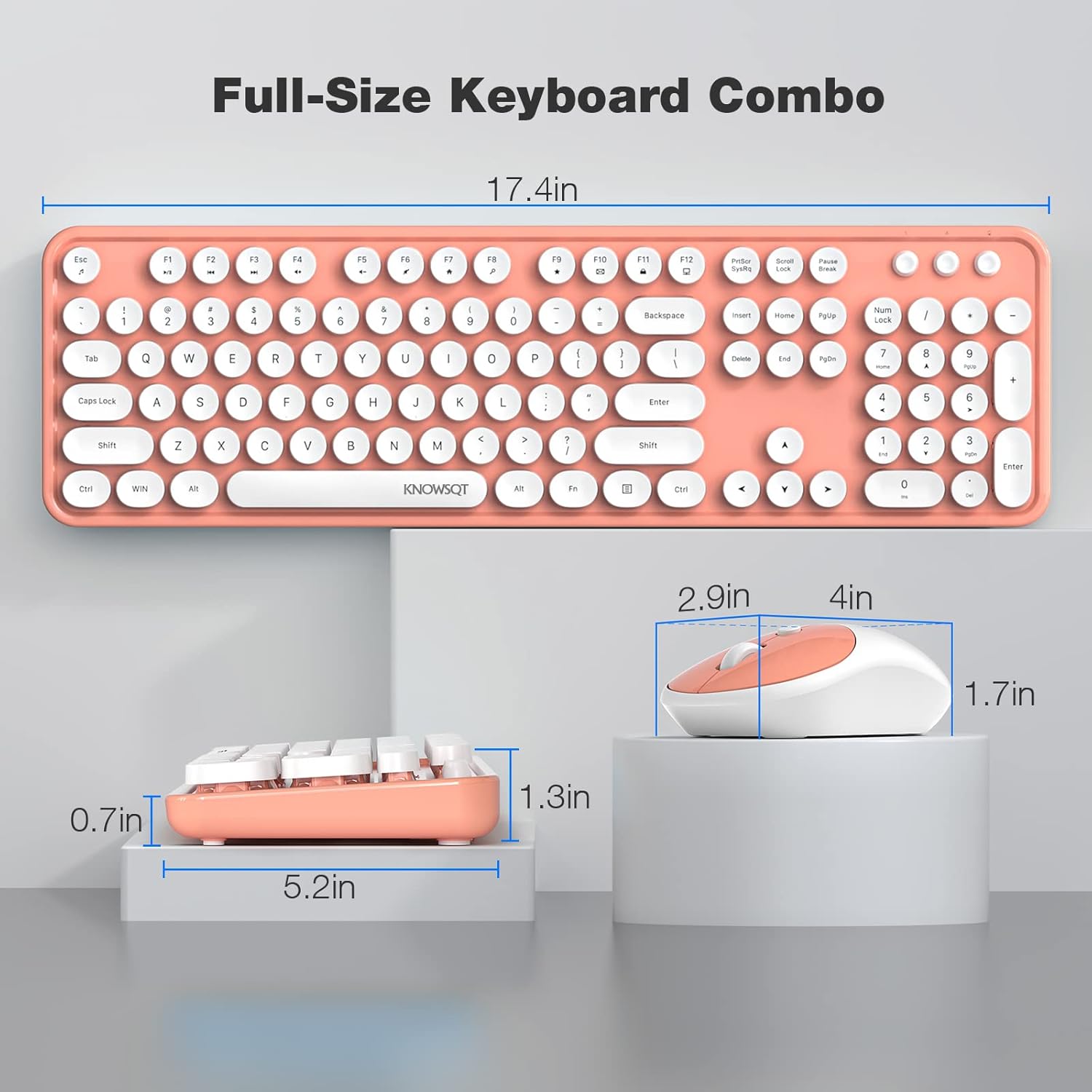 KNOWSQT Wireless Keyboard and Mouse Combo – Orange-White Full-Sized 2.4 GHz 104 Keys Typewriter Keyboard, Flexible Round Keycap and Optical Mouse for Windows, Computer, PC, Laptop, Desktop, Mac