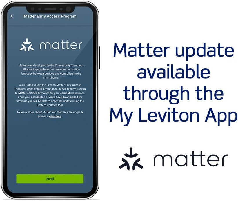 MATTER: Firmware update available via the My Leviton app to enable Matter connectivity