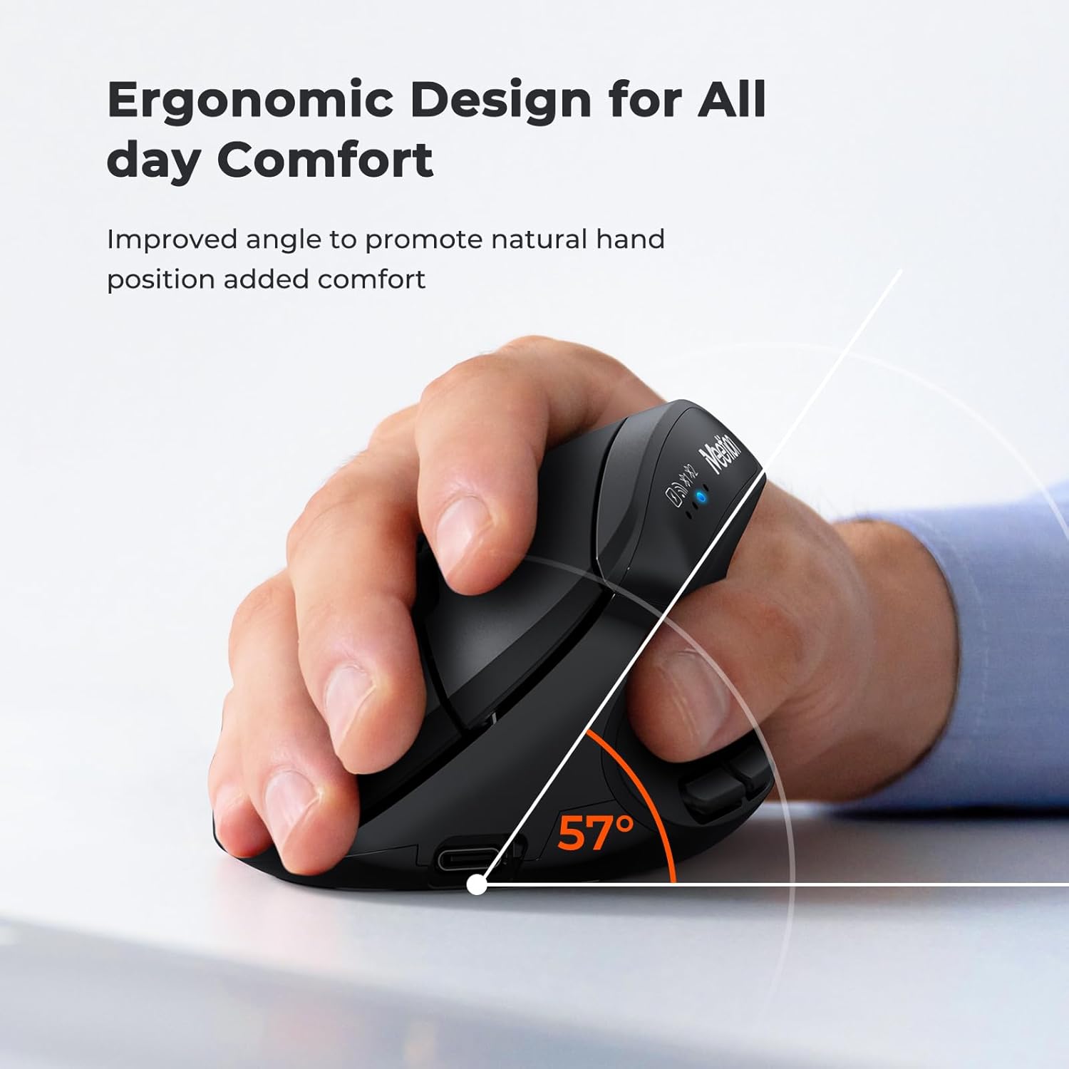 【ERGONOMIC PROWESS】 BTM008 Emphasize the comfort and grip provided by the ergonomic vertical design, it reduces hand strain during extended use. Mention the precision engineering that went into crafting the mouse, ensuring that it fits the hand perfectly for a comfortable user experience.