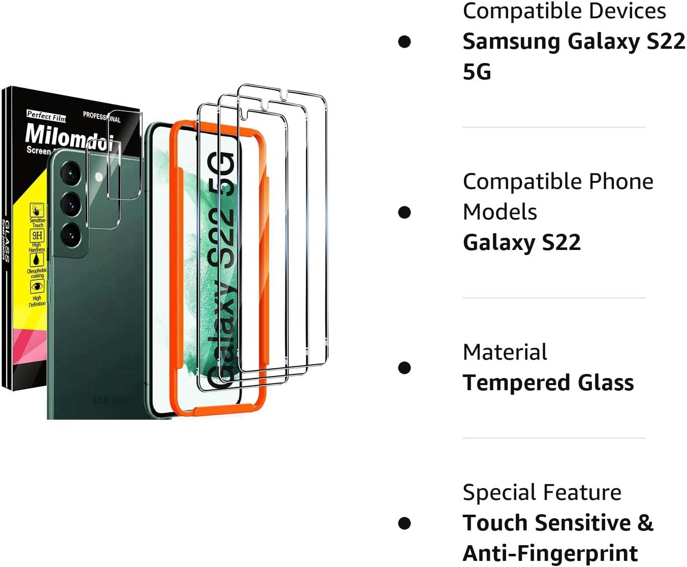 Be the first to review “Milomdoi Designed for Samsung Galaxy S22 5G Screen Protector, 3 Pack Tempered Glass with 2 Pack Camera Lens Protector, Fingerprint suitable, Installation Frame, Case Friendly, Bubble Free, 5 Pack”