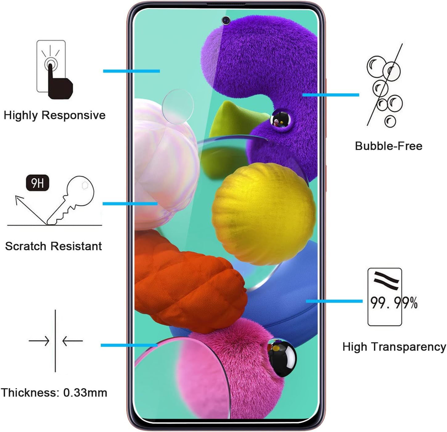 NEW’C [3 Pack Designed for Samsung Galaxy A51 Screen Protector Tempered Glass, Case Friendly Anti Scratch Bubble Free Ultra Resistant