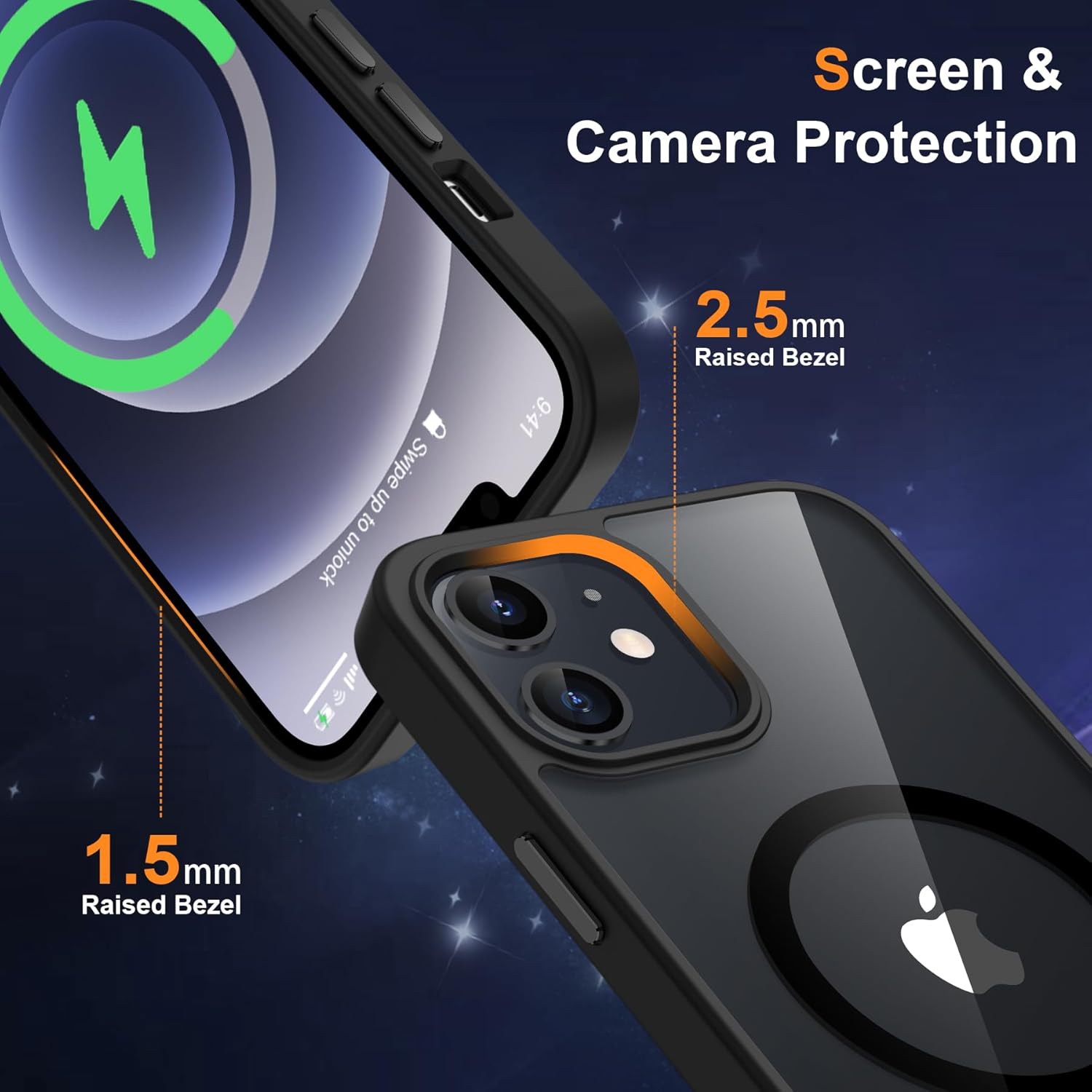 ORETECH Magnetic for iPhone 12 Case/iPhone 12 Pro Case, [Compatible with MagSafe][2 Pcs Screen Protectors][15 FT Drop Protection], Shockproof Bumper, Thin Phone Case iPhone 12/12 Pro Cover, Black