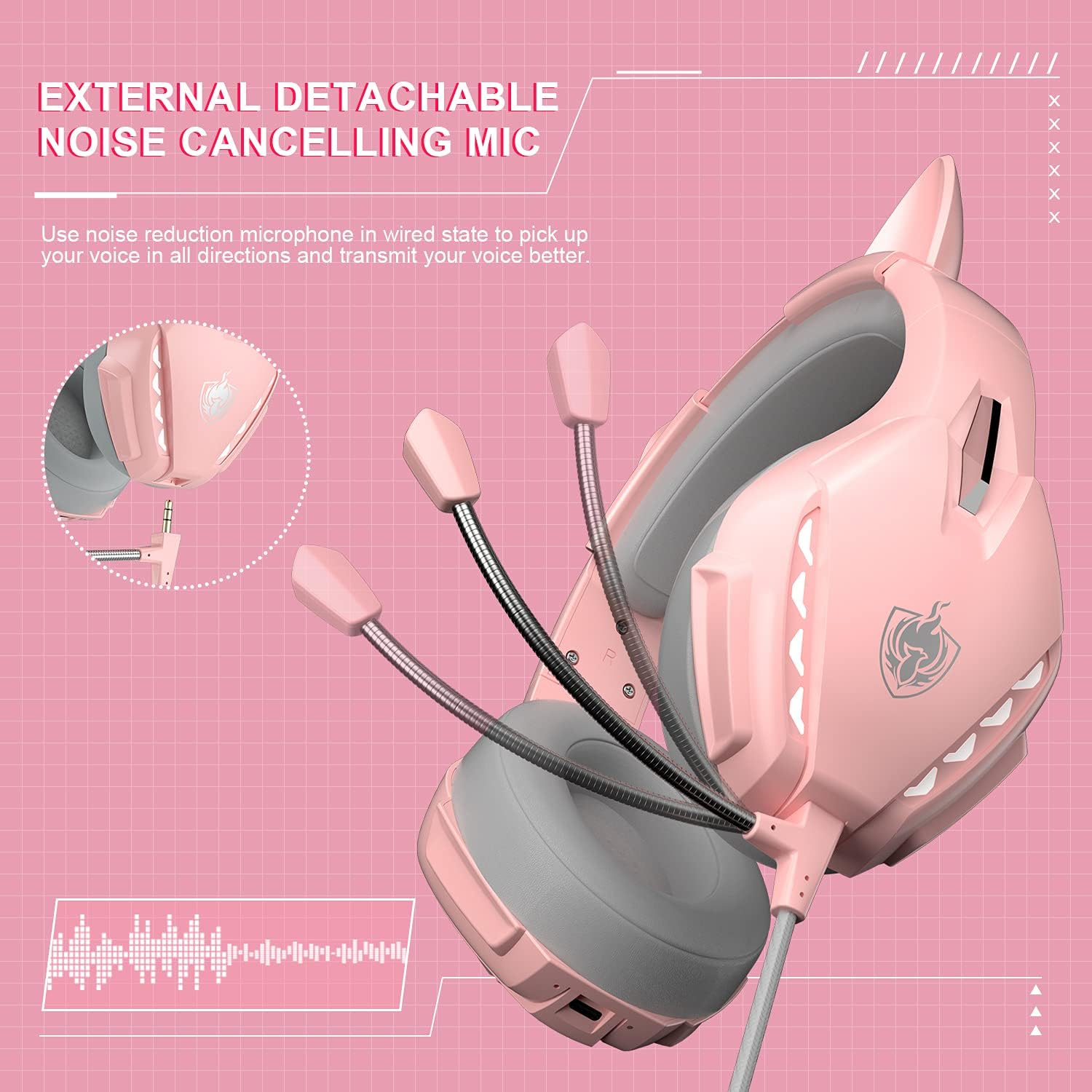 🎧Designed For Girls In e-Sports: Cute pink cat ears (removable) gaming headset, comfortable design with automatically adjustable headband and soft earmuffs, more suitable for long-term wear, in line with girls’ aesthetics and needs, and is for girls Great gift.
