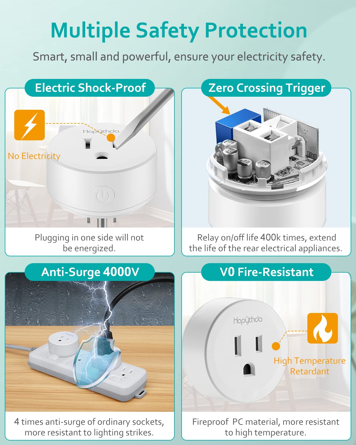 Multiple Safety Protection: HAPYTHDA remote control outlet support advanced smart leakage protection TECH, the current remains off under certain conditions. It also supports zero-crossing trigger technology, surge protection, short circuit protection, overload protection, and overcurrent protection to provide safety for you and your family.