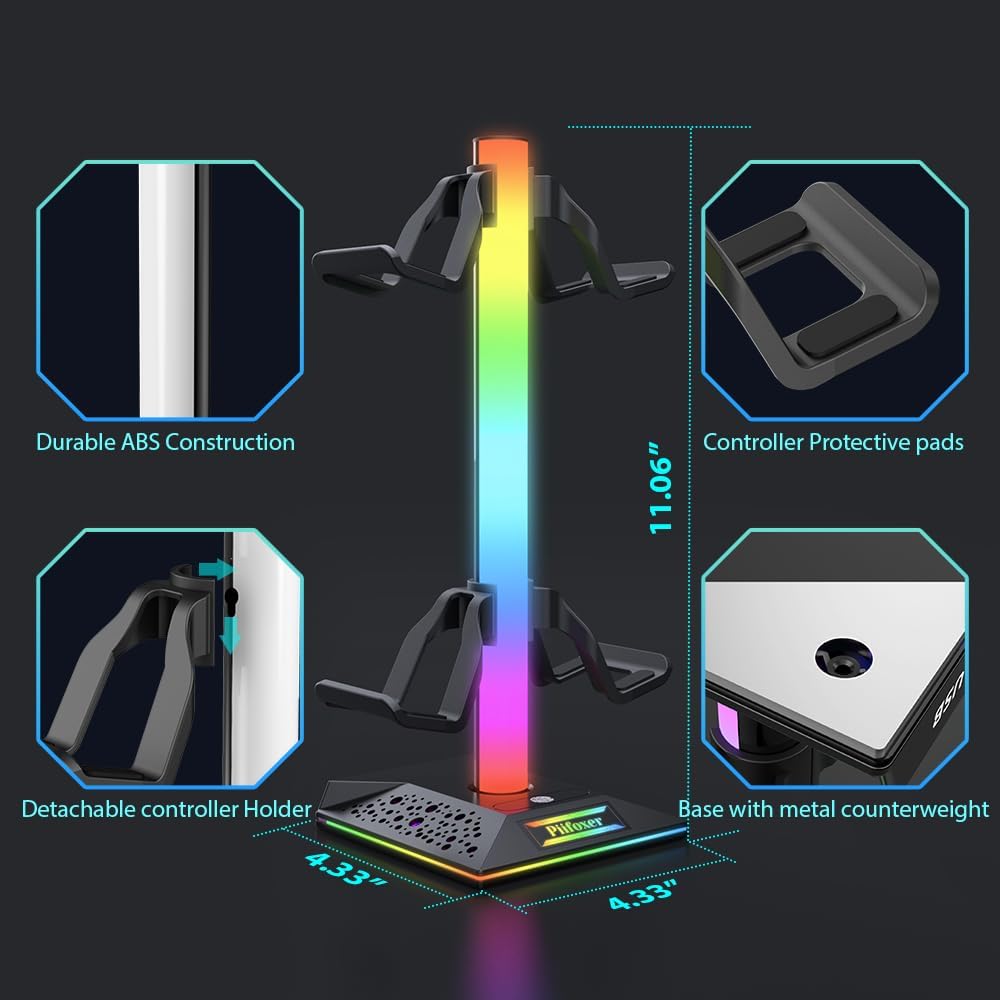 RGB Controller Stand Desk Gaming Headphone Holder with 10 Light Modes and Non-Slip Rubber Base