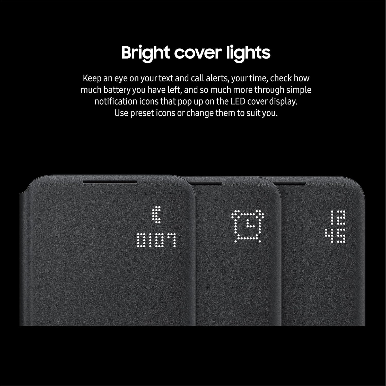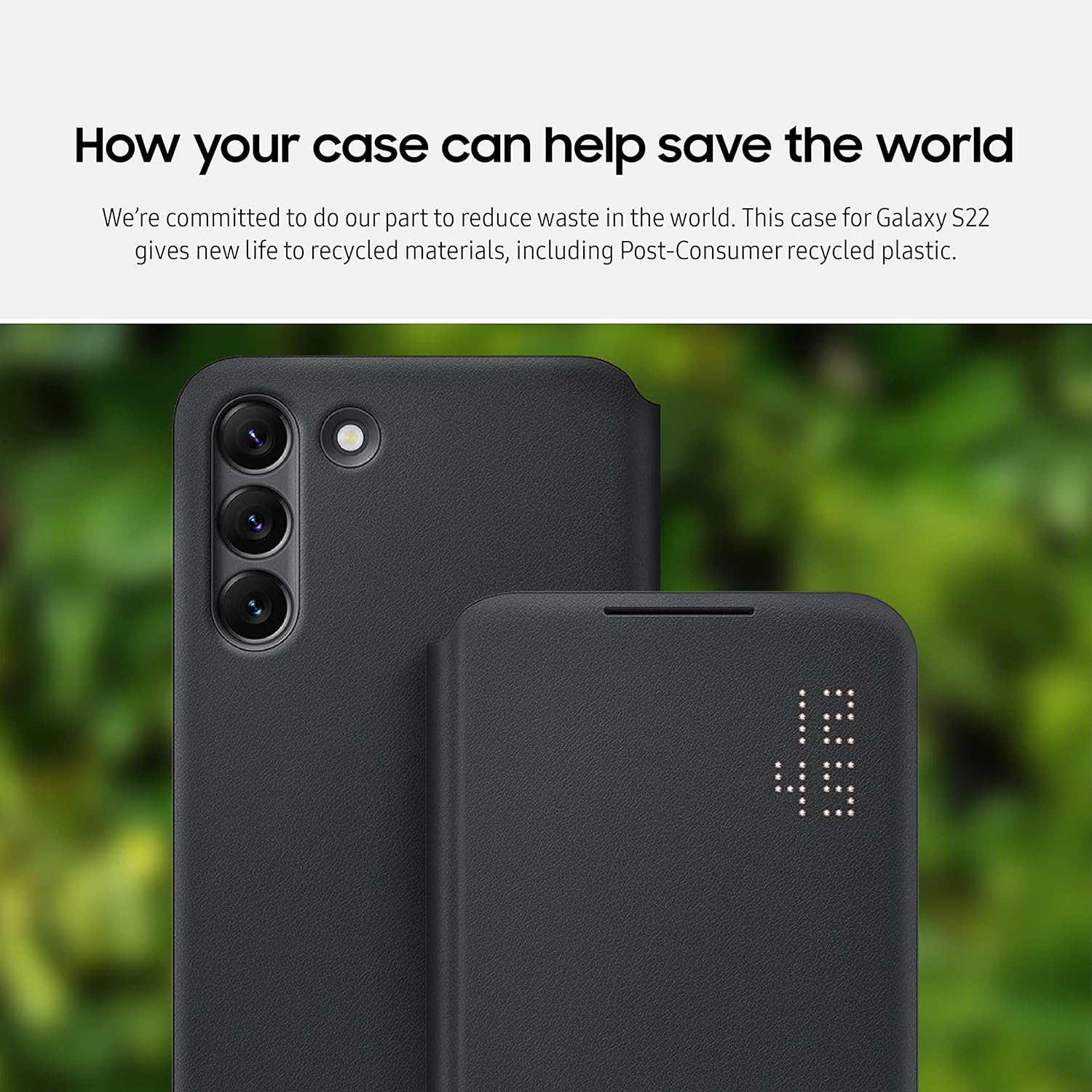 SAMSUNG Galaxy S22 LED View Cover, Protective Phone Case, Tap Control, Card Pocket, Customizable, Shockproof, US Version, Black,EF-NS901PBEGUS