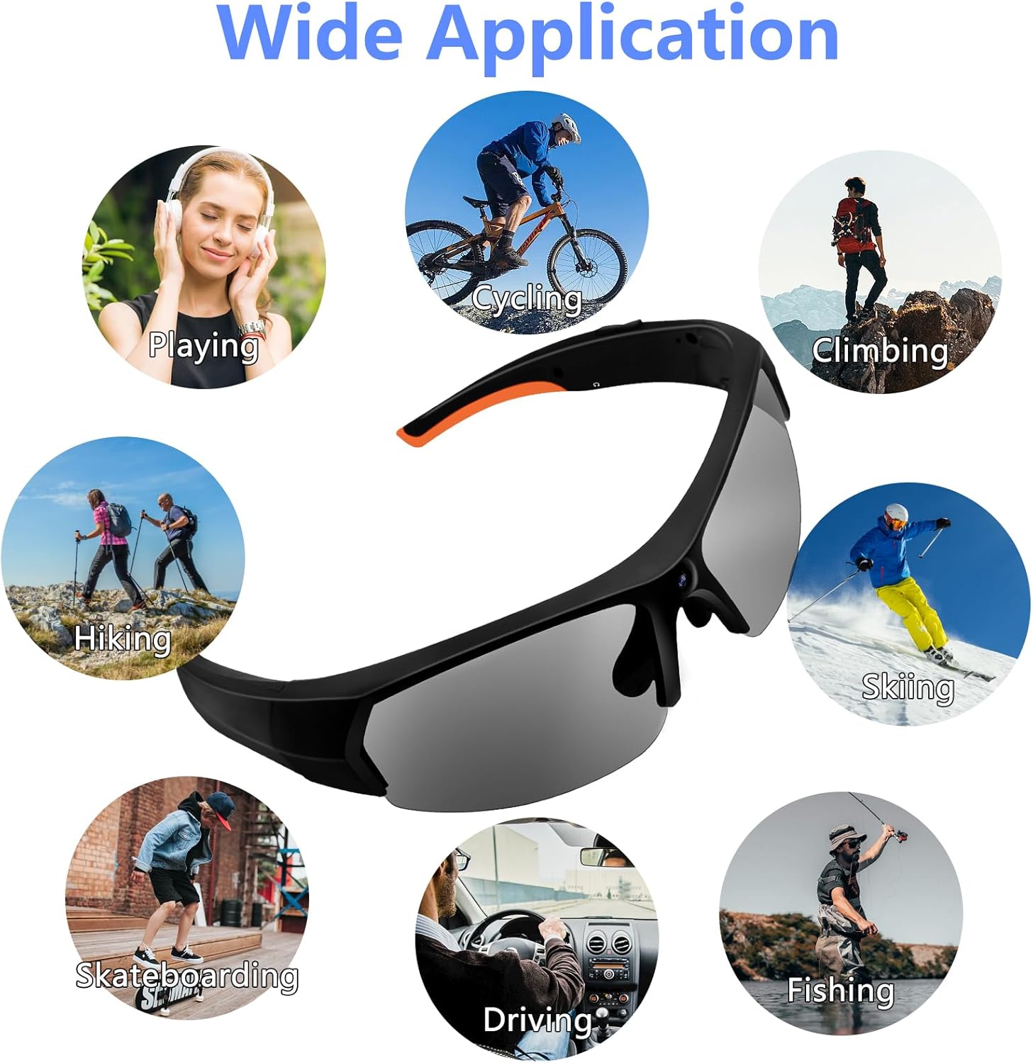 Sunglasses video is suitable for recording fast action shots, cycling, driving, fishing, skiing, traveling, etc.