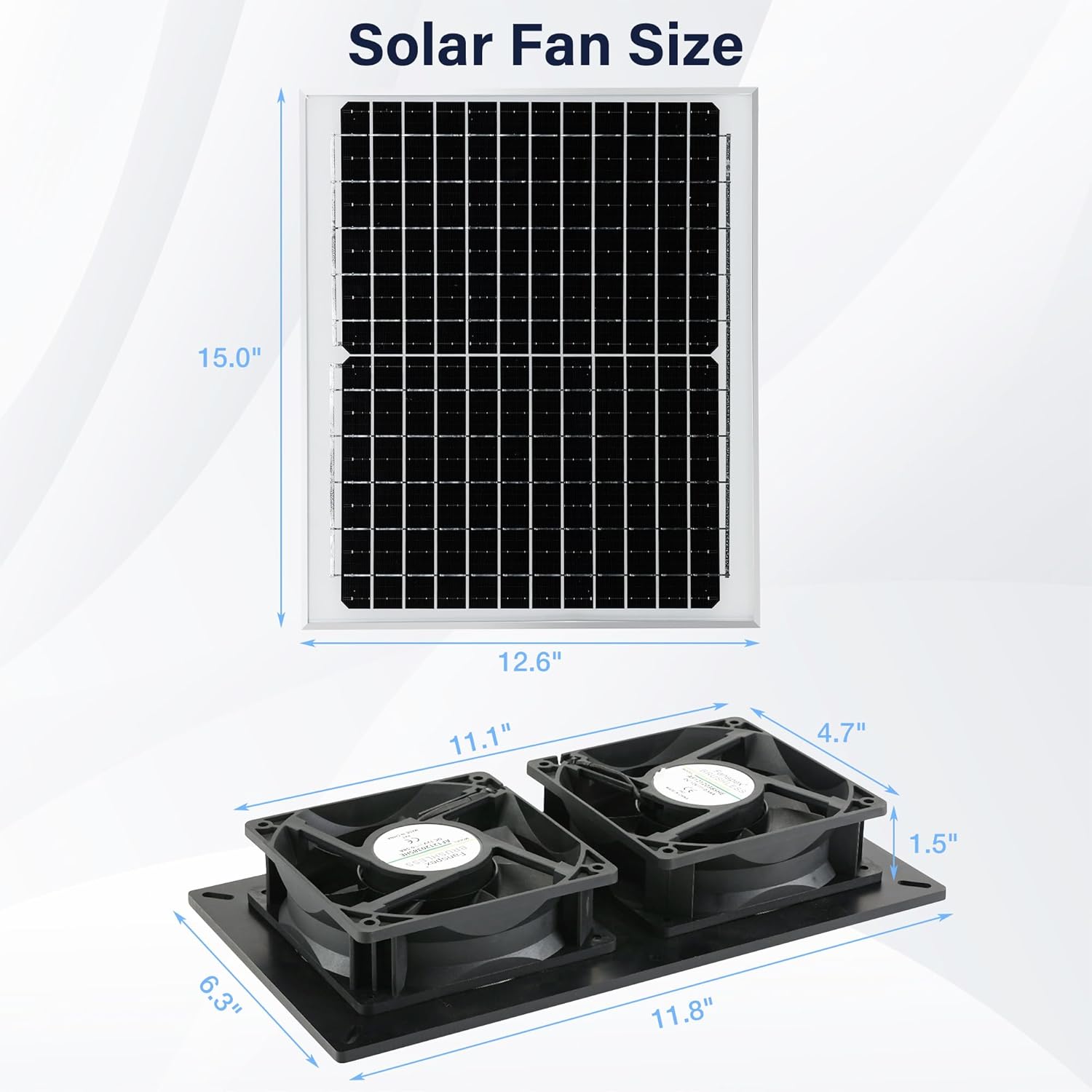 Solar Panel Powered Fan Kit for Greenhouse, 20W Solar Panel + High Speed 3500 RPM Dual Exhaust Fan for Chicken coop, Dog House, Shed, Pet House Air Cooling, IP67 Waterproof