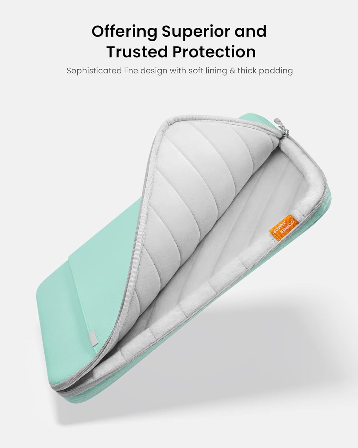 Military-Grade Protection: To combat the toughest situations: from falls to shocks to vibrations, tomtoc proposed the concept of 360 protection and designed the laptop sleeve with CornerArmor Technology, high resilience edges, and high-density soft padding. It passed the Military-Standard-Drop-Test while also maintaining a sleek design