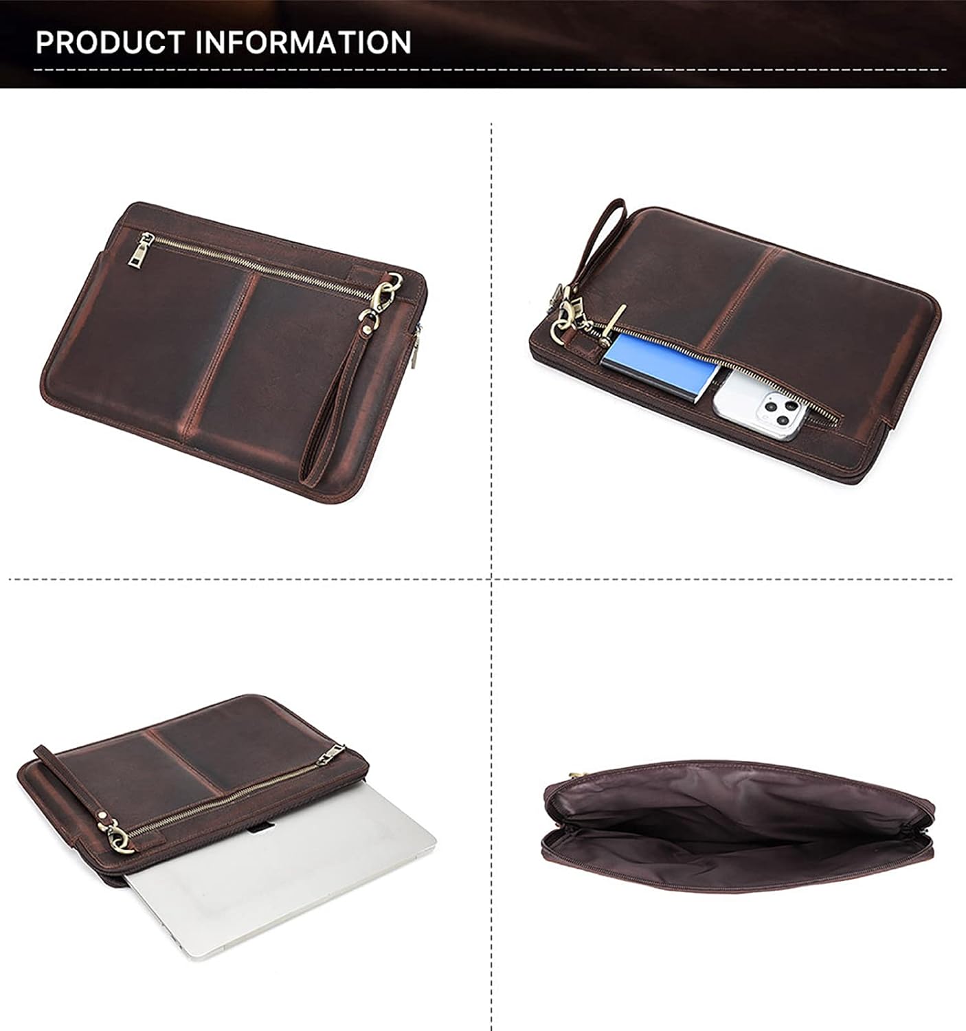 💼【Rugged Top Grain Leather】➯ Our Laptop Hand Bags are crafted from oil-tanned top grain leather, known as Chamois Leather. Featuring a rough matte texture, this ‘Pull Up Leather’ naturally develops a rich, unique patina over time, embracing its ‘crazy horse’ character.