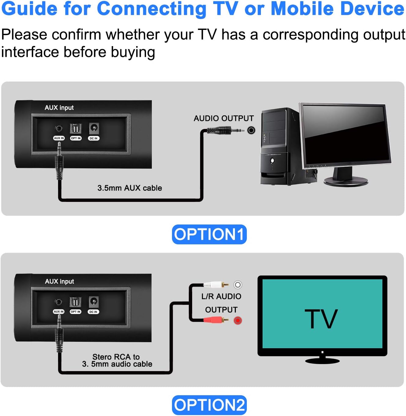 TV Soundbars Operation: When you choose the OPTICAL or AUX connection to connect your TV to our soundbar, please kindly ensure the jack on your tv is specifically labeled OPT Aux out. (Optical / AUX in does not work). If there is still no sound coming out, please press speaker in ‘M’ to change to Opt or AUX