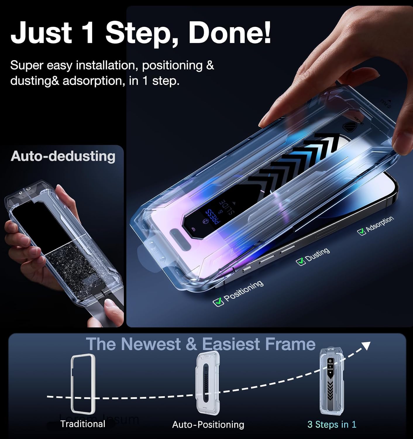 【Easy-On Installation】Comes with everything you need with Innovative Automatic Instant Absorption Technology, making the installation is just effortlessly easy in seconds. Anyone can be an expert in applying this Screen Protector without Air Bubbles or Imperfections. Plus: our specialists are always online for you. Say goodbye to the annoying flaws!
