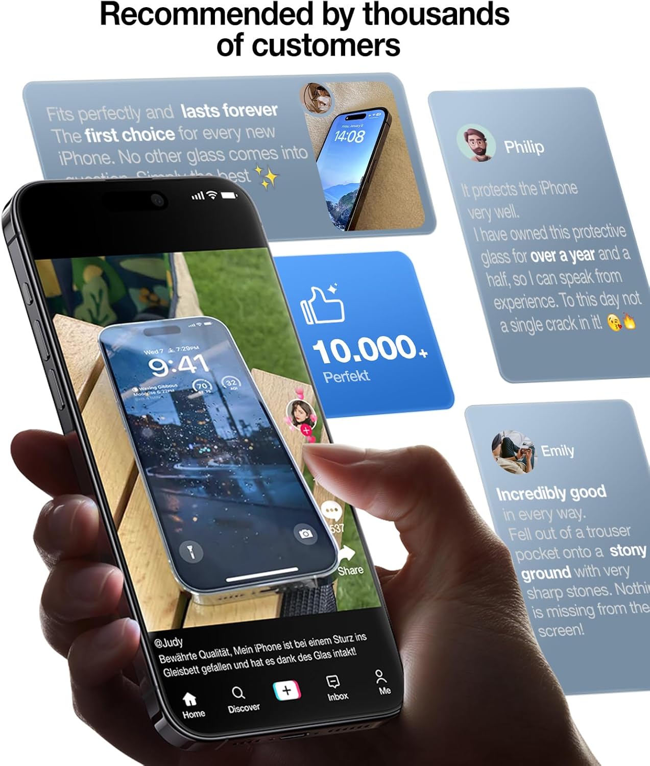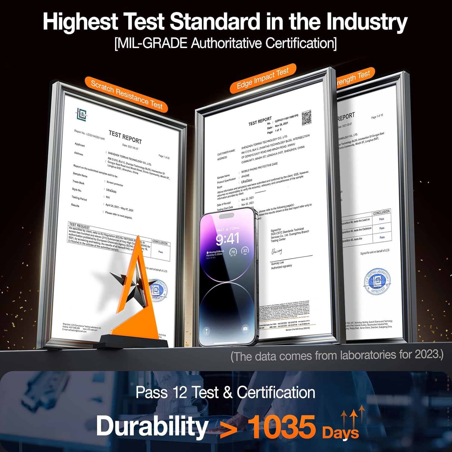 【Industry NO.1 Military Shatterproof】 Authorized by International Military Standard with 12 rigorous engineering tests of 220lbs impact, 8ft drops, 10000+ scratch tests, its strength, toughness and durability perform NO.1 among all glasses.