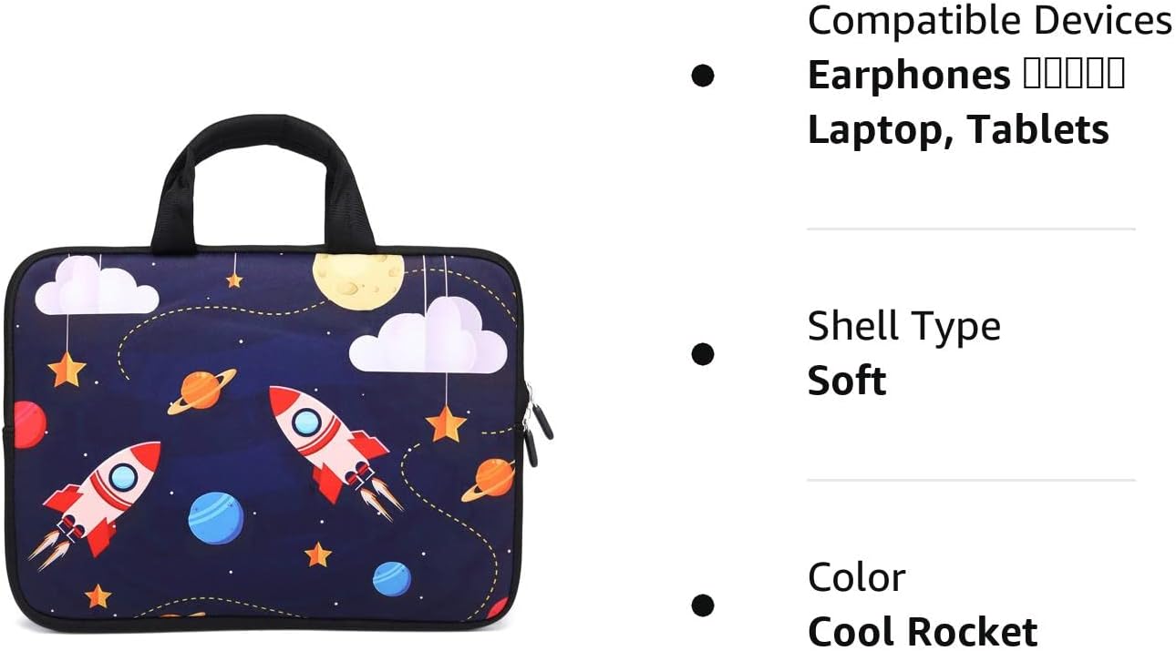Universal 7-9 inch Kids Tablet Sleeve Ultra-Portable, Neoprene Carrying Sleeve Case Bag Compatible with 7″ 8″ 8.5″ 8.9″ 9″ Apple iPad Mini, Samsung, Google, HP, Acer (Cool Rocket)