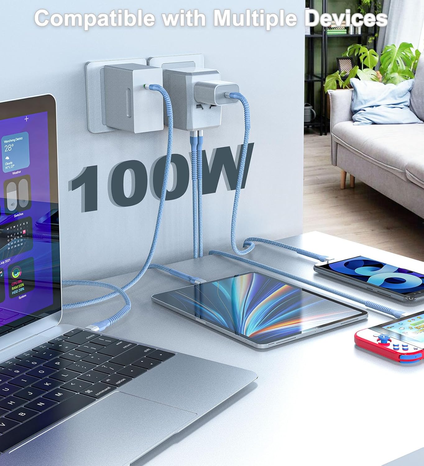 Built-in E-marker chip charging power up to 100 watts, supports PD and QC fast charging protocols, and is compatible with most brands of mobile phones, tablets, laptops, etc.