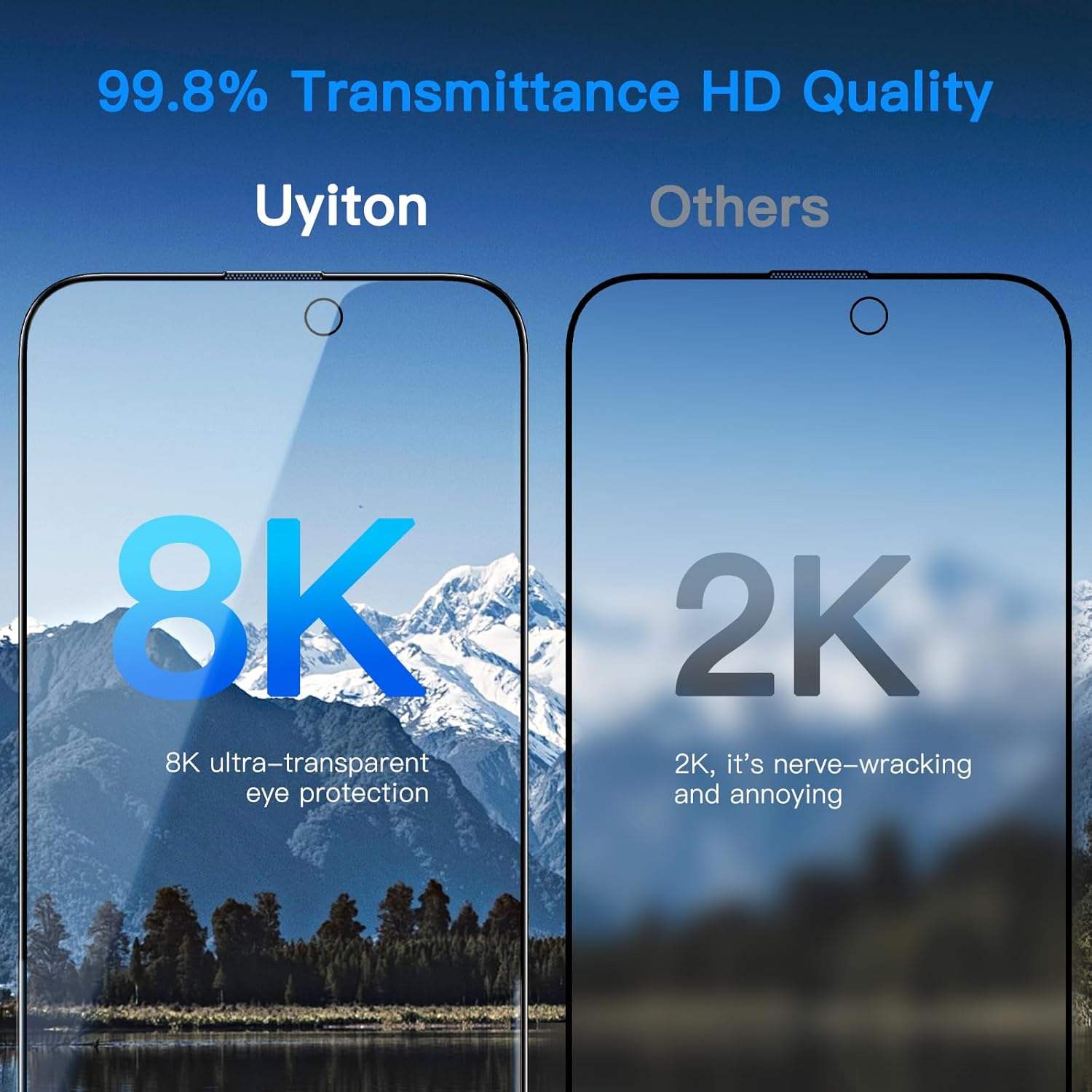 【Designed to Prevent Edge Cracks】 The Uyiton 15 Pro screen protector features EdgeForce technology for optimal edge protection. The silk-screen edge design minimizes the risk of white edges, providing protection against daily knocks, drops, and scratches. Your phone’s safety is our priority.