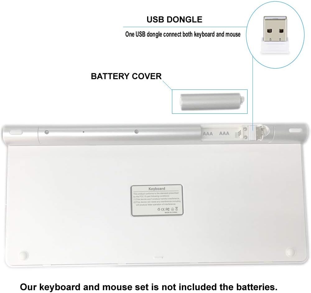 PLUG AND PLAY >>> Our wireless keyboard and mouse is easy to use. Just plug the USB dongle to the USB port of your computer and install the batteries.This Wireless keyboard and mouse is used the best simple connection way for everyone. It is ONLY ONE USB DONGLE to connect with keyboard with mouse. [The USB dongle is placed in the battery compartment of keyboard.]