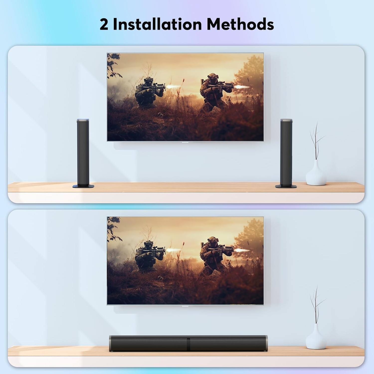👉2.2 Channel Detachable Design: Use this soundbar system as two 16″ tower speakers for extensive stereo effects and surround sound, or combine them into a 32″ long soundbar to save space.