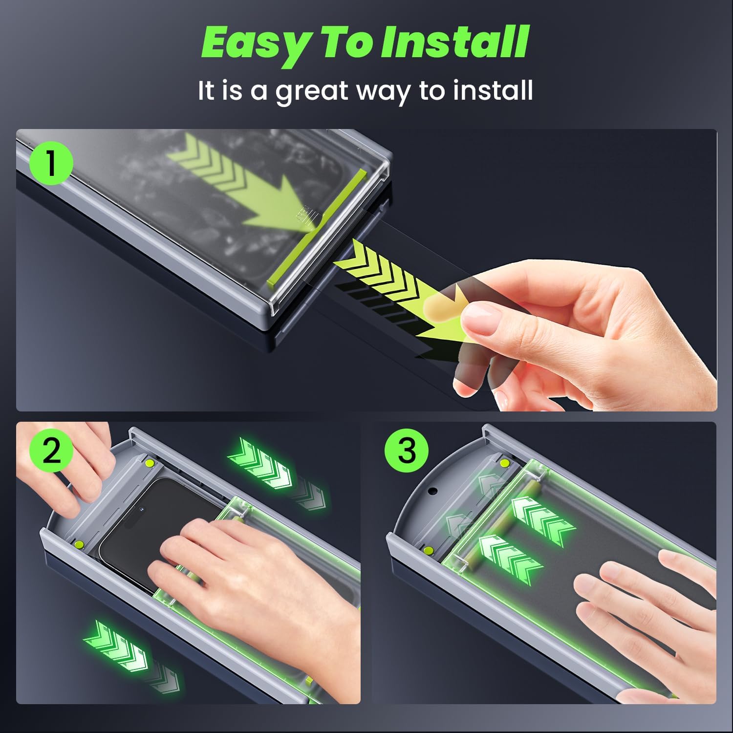 [Zero Bubble Easy Installation Makes All Easier] Simplified application! Install Box included for quick and easy installation. With just a few seconds of pulling, and the screen protector would apply to your Samsung Galaxy S24 Plus / S24+ (6.7 inch) flawlessly. No more worry about the alignment & bubbles problem, installation has never been so easy. Warm Tips: Please watch the installation video before starting.